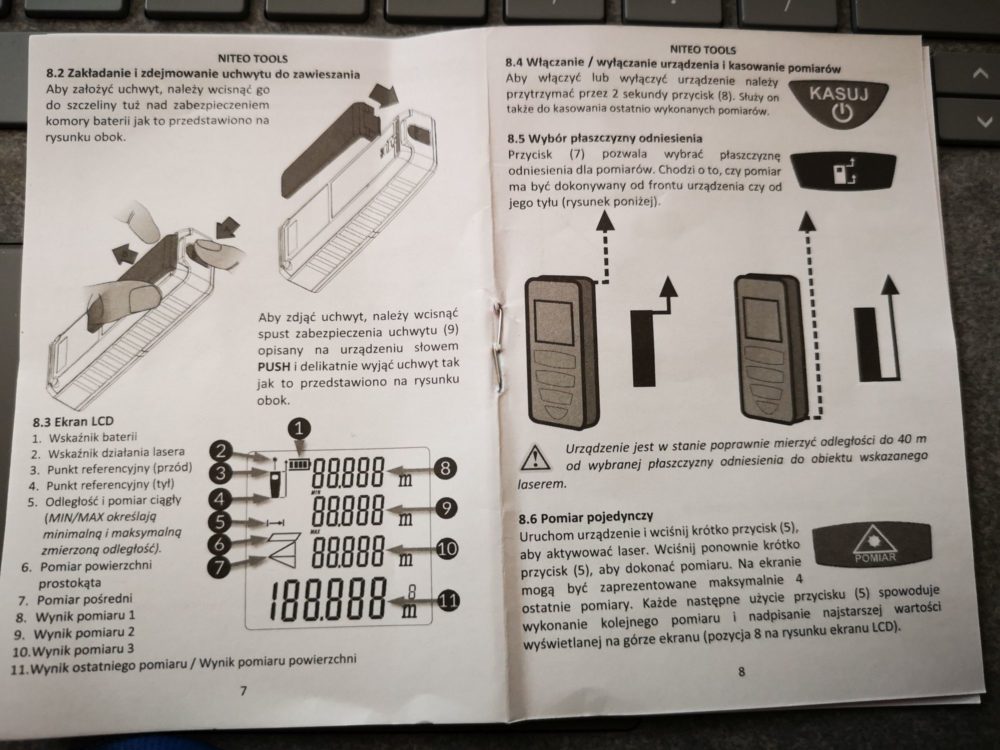 Coś podobnego kupiłem w Lidlu . Jednym słowem szkoda pieniędzy . Pokazuje to cuda a nie pomiary . Wkurzyłem się i kupiłem Boscha i ten to faktycznie mierzy . Lepiej dać dwa razy tyle o mieć sprzęt na lata niż bezużyteczny złom .