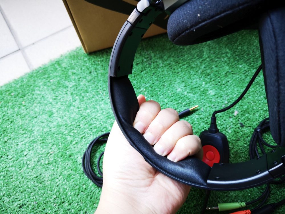 Góra słuchawek zbudowana jest również z plastiku. Pod pałąkiem znajduje się bardzo mięciutka skórzana (sztuczna skóra) wkładka, którą regulują paski chowające się w słuchawki. Dzięki takiemu zabiegowi słuchawki niemalże idealnie dopasowują się do naszej głowy.