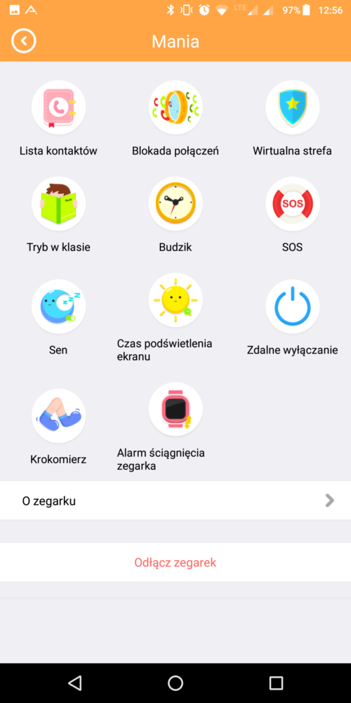 – blokada połączeń – po włączeniu tej funkcji nikt z poza listy kontaktów nie będzie mógł się dodzwonić na smartwatcha.