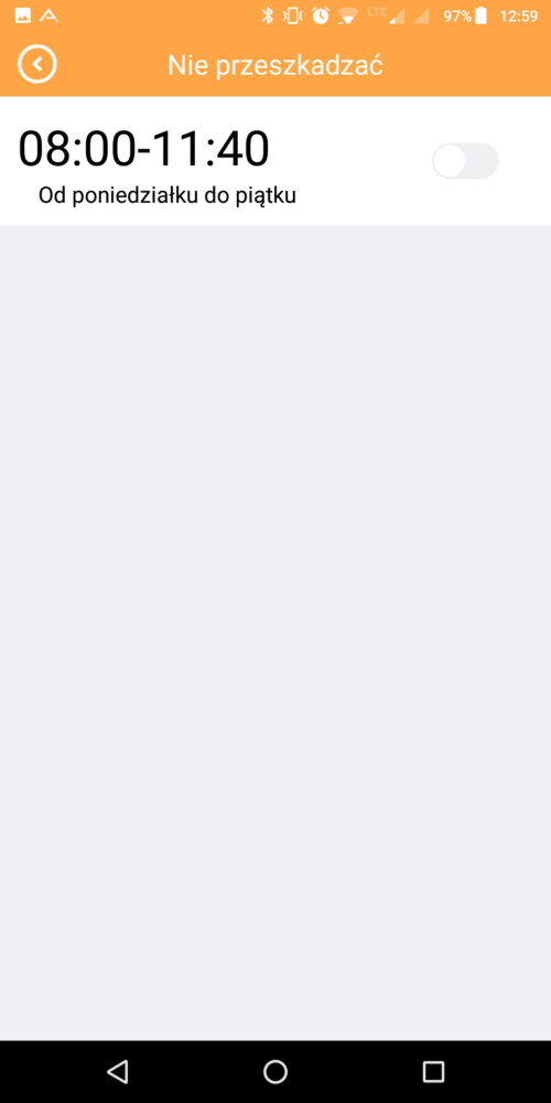 –tylko w klasie – włącznie funkcji uniemożliwia odbierania i wykonywania połączeń we wcześniej ustalonych w aplikacji godzinach. Co ciekawe przycisk SOS jest dalej aktywny więc pod przypisany pod tym przyciskiem numerem dziecko będzie się mogło skontaktować lecz tylko w jedną stronę – jeśli dziecko wybierze numer (numer przypisany pod przyciskiem nie będzie miał możliwości dodzwonienia się).