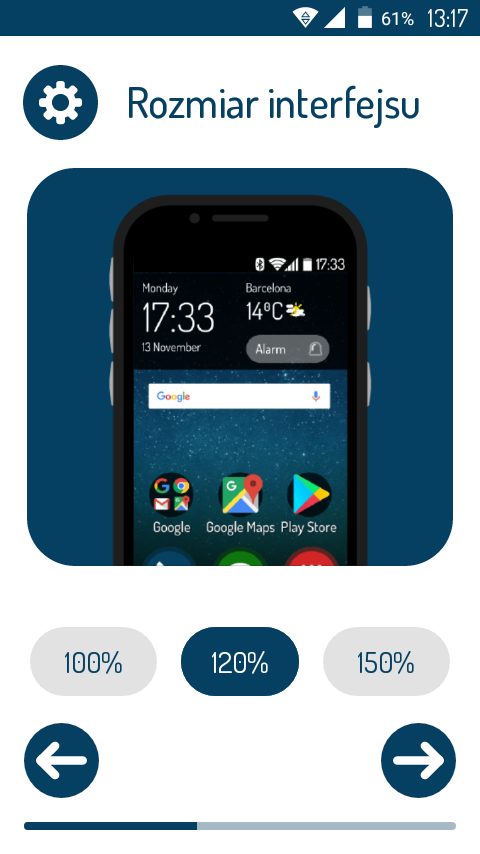 Google i zalogowanie się w panelu zdalnej kontroli Maxcom Remote. Usługa Remote jest bezpłatna. Możemy tam m.in. zdalnie dodać kontakty do telefonu, ustawić przypomnienia, zmienić jasność ekranu, a nawet zlokalizować telefon lub zdalnie włączyć dzwonek. Możesz w prosty sposób zmienić też rozmiar wszystkich elementów na ekranie. Do wyboru mamy trzy rozmiary. W telefonie znajdziemy kilka przydatnych aplikacji i udogodnień mi.n. takich jak: funkcja głośnomówiąca, radio FM, kalendarz, latarka.
