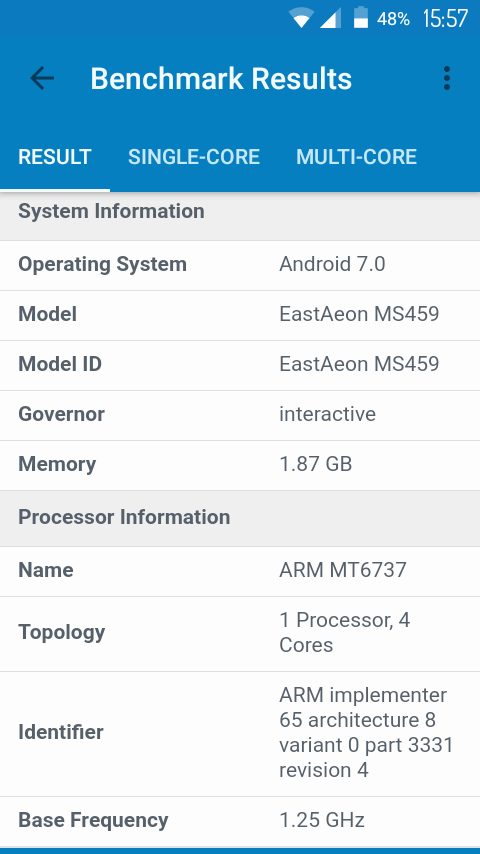O przetwarzanie danych dba 64bit. procesor MTK6737, taktowany zegarem o częstotliwości (4x 1.30 GHz, ARM Cortex-A53). Wspomagany przez procesor graficzny Mali-T720 i 2GB pamięci operacyjnej RAM zapewnia wystarczającą wydajność w przetwarzaniu grafiki, choć oczywiście nie można się po niej spodziewać też cudów. Urządzenie oferuje 16 GB pamięci FLASH, z czego do bezpośredniego zagospodarowania użytkownik dostaje trochę ponad 8 GB. Wielkość tę można bez najmniejszych problemów powiększyć o kolejne 32 GB, dzięki gniazdu kart microSD.