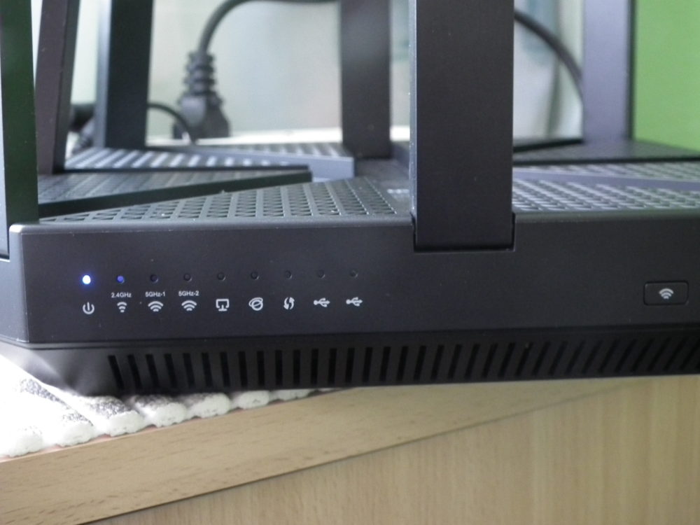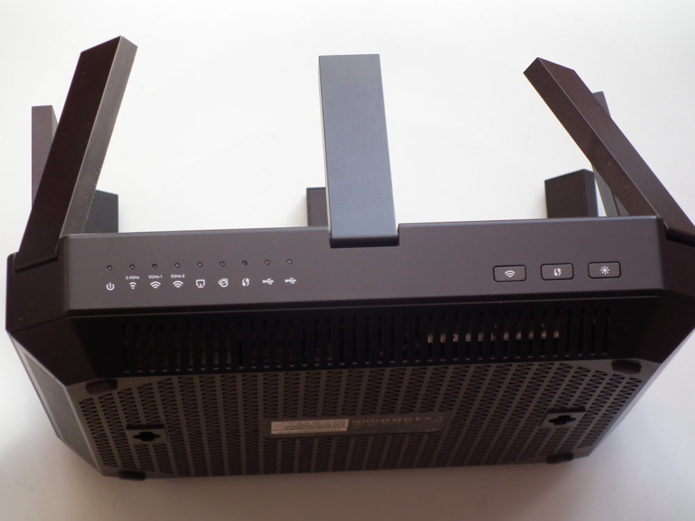 Na frontowej ściance skupiono diody informujące o pracy urządzenia oraz trzy przyciski. Służą one, kolejno od lewej, do: włączania/wyłączania radia Wi-Fi, przycisk WPS do szybkiego łączenia urządzeń bezprzewodowych z routerem oraz sterowania samymi diodami. Gustowne i ładnie wkomponowane diody LED, na froncie informuje o stanie pracy routera: aktywnej łączności Wi-Fi, dostępu do Internetu, podłączonych użytkownikach LAN, itp. Same diody, można wyłączyć w razie, gdyby komuś ich światło przeszkadzało.