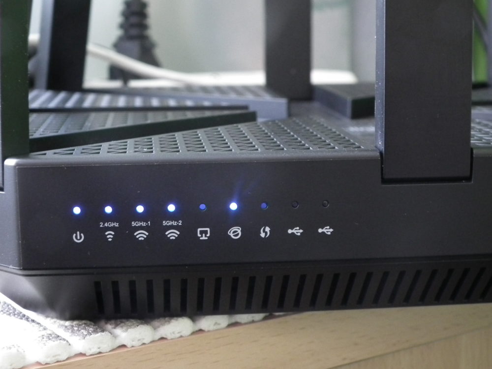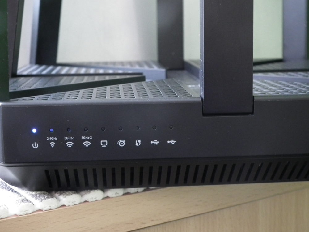 Z tyłu routera znajdziemy pięć portów gigabitowych. Cztery LAN 10/100/1000 Mb/s oraz jeden WAN 10/100/1000 Mb/s. Jest tam także przycisk za pomocą, którego możemy wyłączyć sieć bezprzewodową Wi-Fi, jeśli w danej chwili z niej nie korzystamy. 2 porty USB (USB 2.0 i 3.0), za pomocą których możemy podpiąć zewnętrzny magazyn danych, drukarkę czy serwer tworząc własną chmurę, włącznik i przycisk resetowania urządzenia.