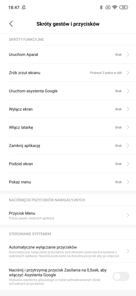 - Możliwość wykonania zrzutu ekranu poprzez przesunięcie 3 palcami po ekranie (Ustawienia/Dodatkowe ustawienia/skrót gestów i przycisków/zrób zrzut ekranu – przesuń 3 palce w dół ekranu)