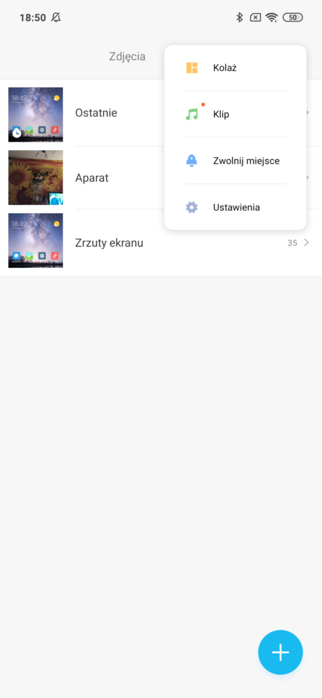 - Układanie zdjęć w kolaż bez dodatkowych zewnętrznych aplikacji (Wystarczy wejść w galerię, kliknąć trzy kropki w prawym górnym rogu i wybrać opcję „kolaż”. Pojawi się kilkanaście różnych motywów do wyboru)
