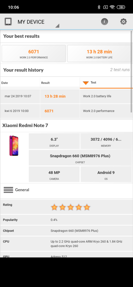 Testowany smartfon Redmi Note 7 został wyposażony w: