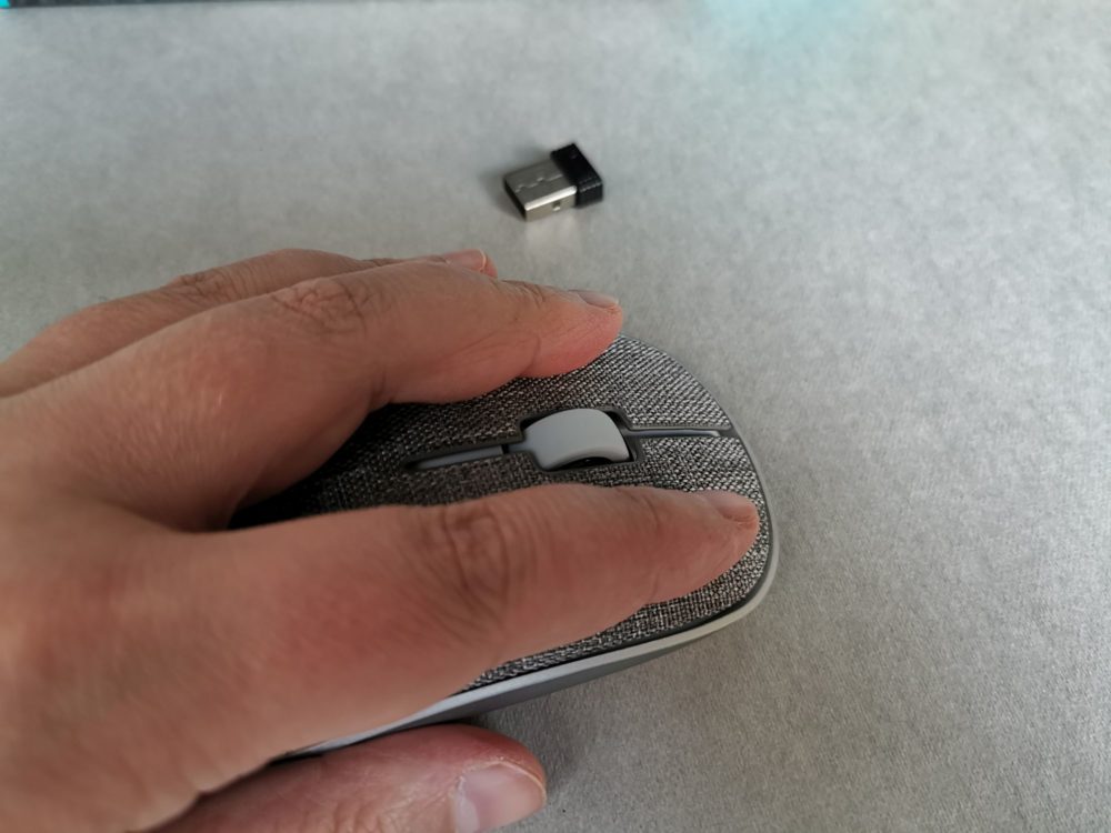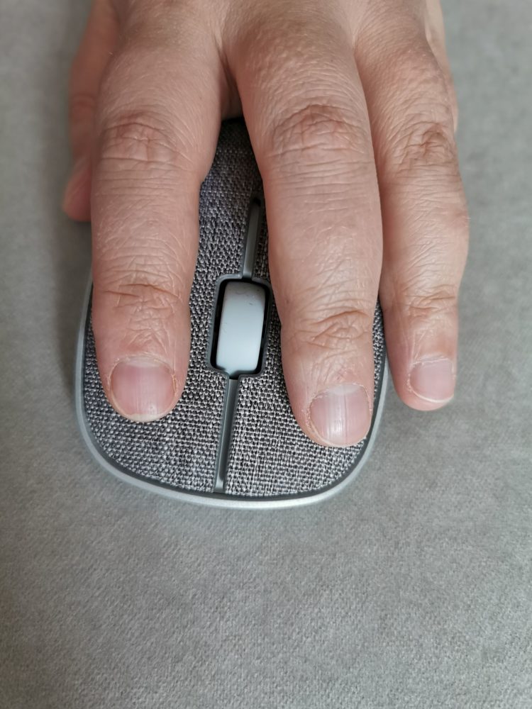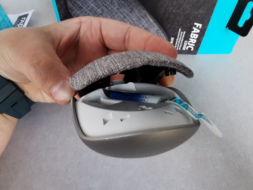 Co więcej górną część myszy możemy bez problemu zdjąć. To dobra wiadomość, gdyż pomimo, że producent deklaruje, że materiał jest odporny na zabrudzenia, to jednak myślę, że przy dłuższym użytkowaniu mogą nam się przytrafić różne przygody, a dzięki zdejmowanej pokrywie możemy bez problemu przemyć materiał pod bieżącą wodą czy przetrzeć go wilgotną szmatką bez obawy o mechanizmy ze środka. Ja testowałam myszkę przez ponad 3 tygodnie i nie zauważyłam na niej jakiś brudów czy uszkodzeń. Materiał wydaje się więc taki jak deklaruje producent. Niemniej na pewno więcej można by powiedzieć po np. roku użytkowania, ale czas, który mam na testy nie pozwala mi niestety to sprawdzić.