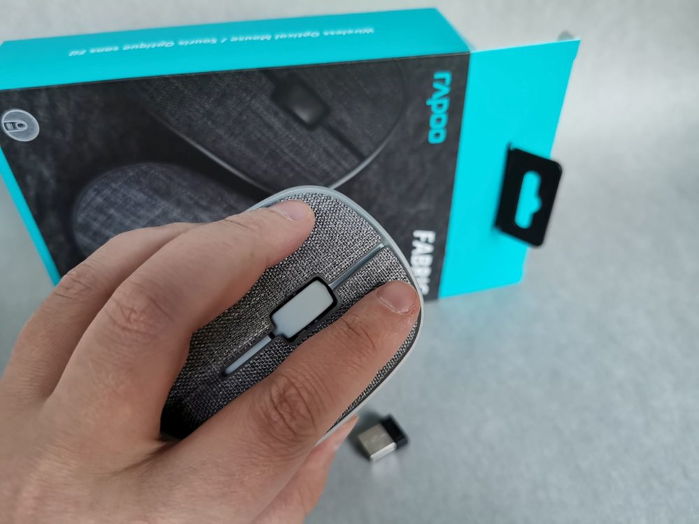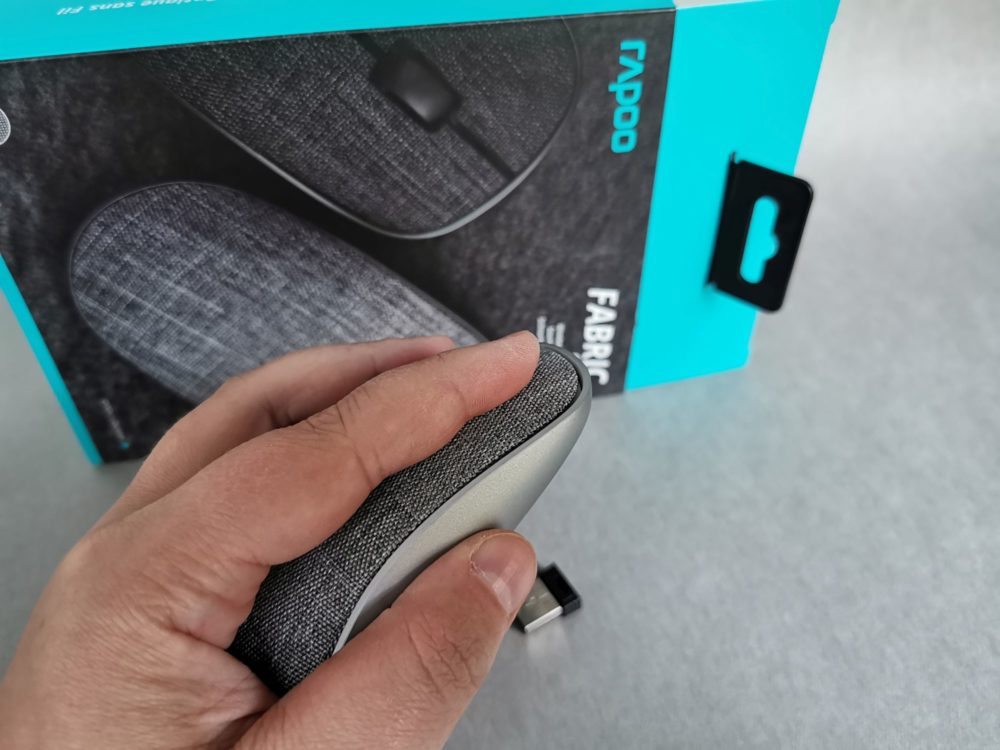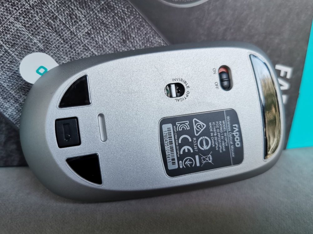 Jak tylko otworzymy pudełko, to od razu zauważymy, że RAPOO 3510 Plus nie jest kolejną standardową myszką, ale oferuje coś więcej. Na jej wyjątkowość składa się pokrycie górnej części myszy bardzo miękką i przyjemną w dotyku tkaniną. Pozostała część gryzonia (boki i spód) została wykonana z metalicznego plastiku, co sprawia, że całość komponuje się bardzo dobrze.
