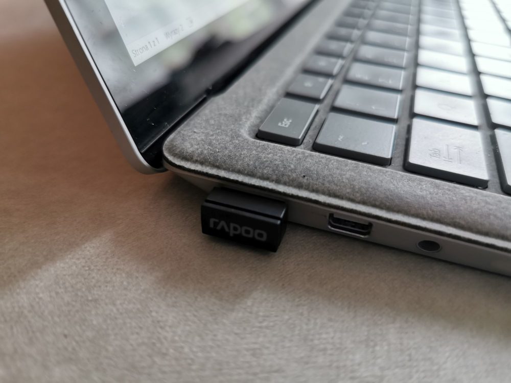 Podłączenie myszki jest bajecznie proste. Dokładnie tak jak powinno być. Podłączamy nano odbiornik i po chwili możemy już korzystać z naszego gryzonia. Windows sam wykrył mi urządzenie, ale jak chcemy mieć idealnie dopasowane sterowniki, to producent również oferuje takie do pobrania na swojej stronie: http://www.rapoo.com/product/353. Odbiornik USB pozwala na połączenie myszki za pośrednictwem sieci radiowej na paśmie 2.4GHz. Nie mamy tutaj możliwości podłączenia przez BT, a szkoda, gdyż nie zawsze mamy do dyspozycji wystarczająco dużo gniazd w komputerze. Ja w swoim posiadam tylko 1 USB i ciągle ubolewam, że jest ciągle zajęte.
