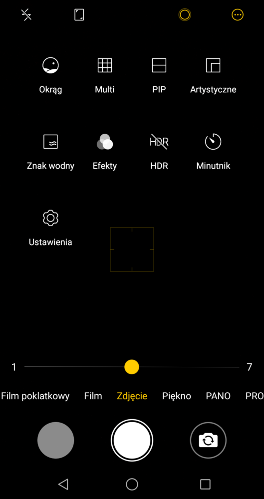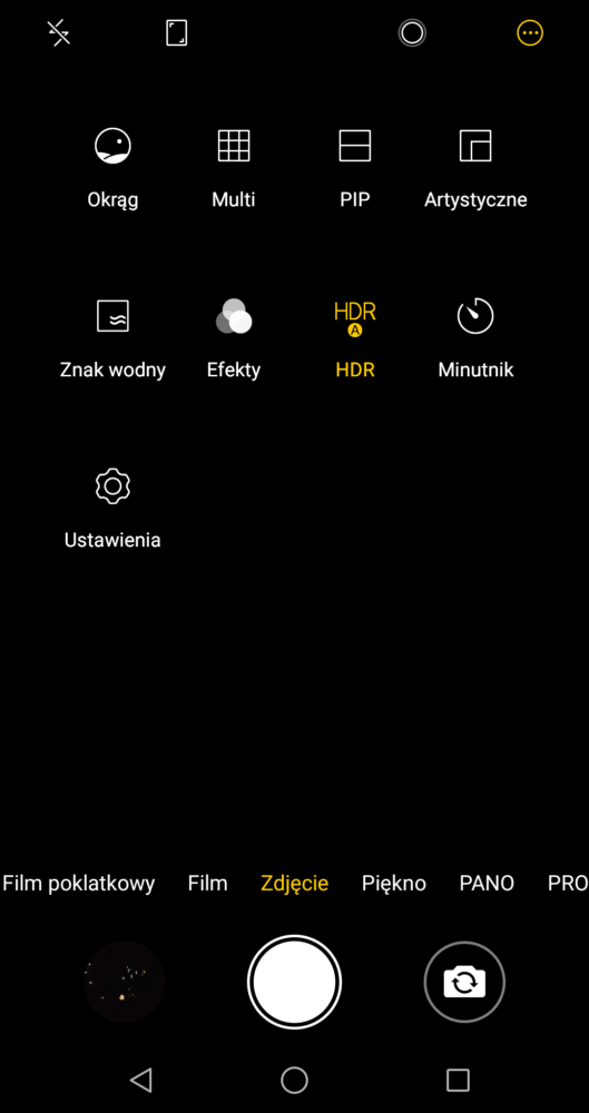 Warto wspomnieć, że telefon otrzymał inny interfejs do przełączania pomiędzy ustawieniami, od tego znanego z aplikacji Androida. Moim zdaniem jest on bardziej intuicyjny i bardziej przyjazny dla użytkownika. Aplikacja kamery oferuje nam sporo opcji konfiguracji i możliwości wpłynięcia, na jakość zdjęć – dzięki temu nie trzeba już szukać odpowiednich programów, wszystko jest już dostępne bezpośrednio ze smartfona. Można też skorzystać z trybu PiP i zrobić sobie zdjęcie na tle podziwianego krajobrazu. Dodatkowo mamy dostęp do trybu PRO.