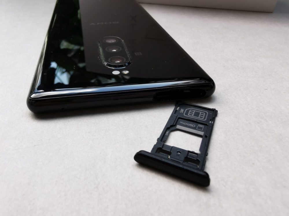 Na górnej krawędzi telefonu znajdziemy szufladkę na kartę SIM (Dual SIM: Nano-SIM + Nano-SIM lub microSDXC do 512 GB) – otwiera się ją bez potrzeby używania szpilek.