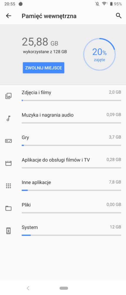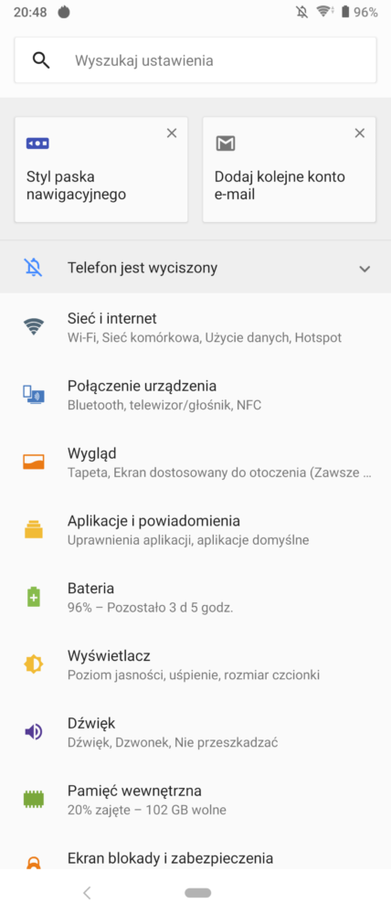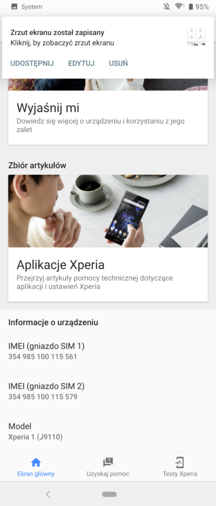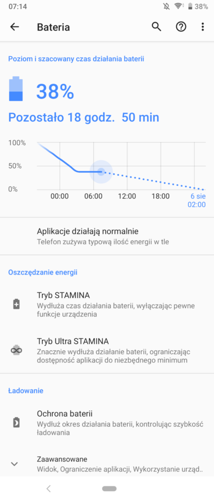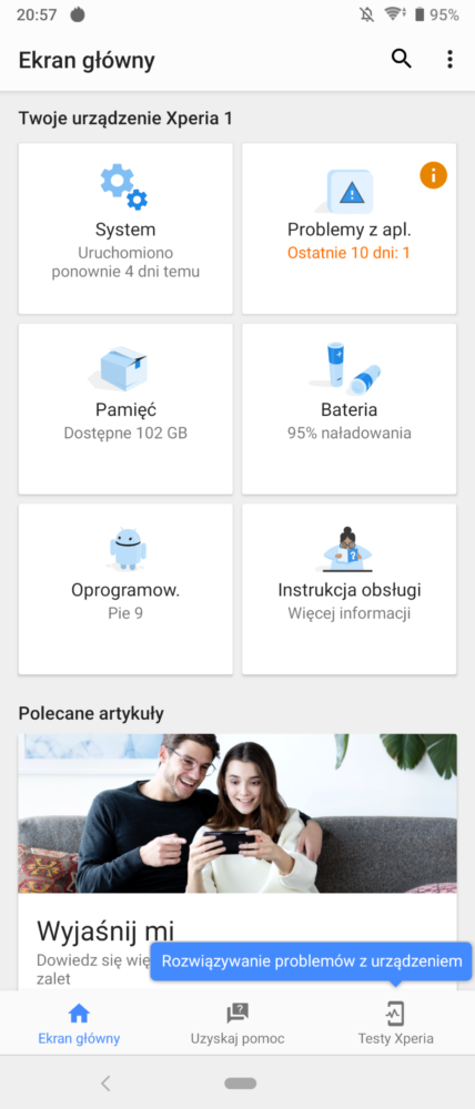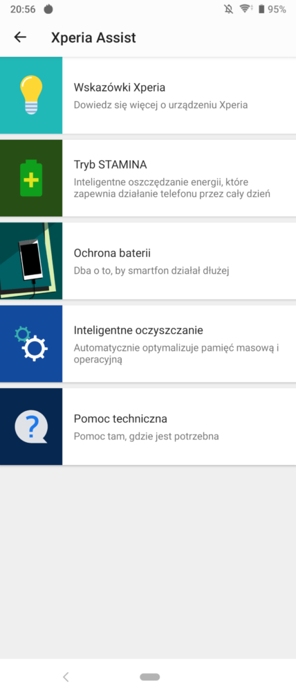 Sony Xperia 1 został oczywiście wyposażony w system Android 9.0 Pie, który znamy już z wielu modeli telefonów. Dodam jeszcze, że w trakcie moich testów pojawiła się również aktualizacja systemu (16.08.2019r.). Co więcej znajdziemy tutaj również niewielką nakładkę producenta, która została wyposażona w autorskie dodatki takie jak wspomniane już wcześniej boczne menu, wskazówki Xperia, ochrona baterii, inteligentne czyszczenie, pomoc techniczna czy tryb STAMINA (inteligentne oszczędzanie energii). Ponad to znajdziemy tutaj również bardzo bogaty zestaw zainstalowanych aplikacji: