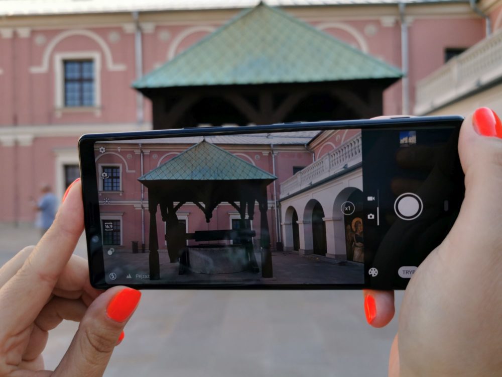 I na koniec zostawiam kwestię aparatu. Sony Xperia 1 została wyposażona w potrójny aparat na pleckach oraz jeden przedni aparat. Parametry:
