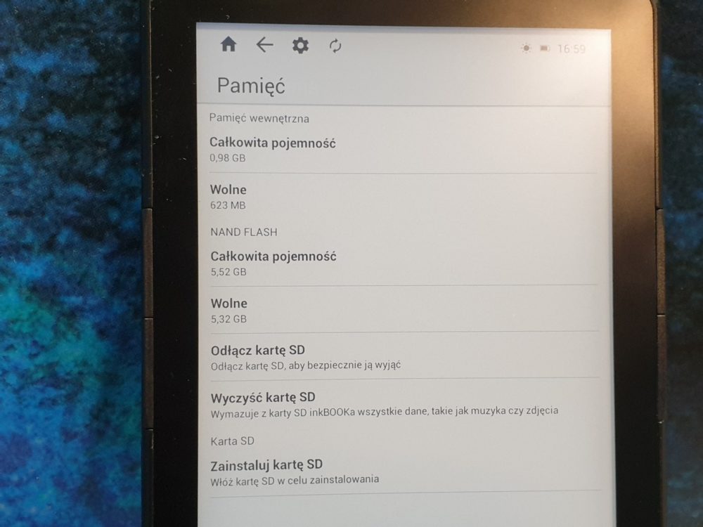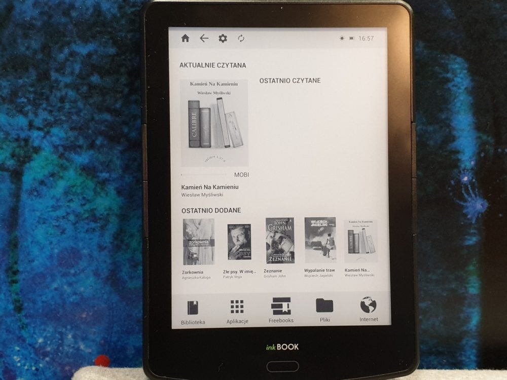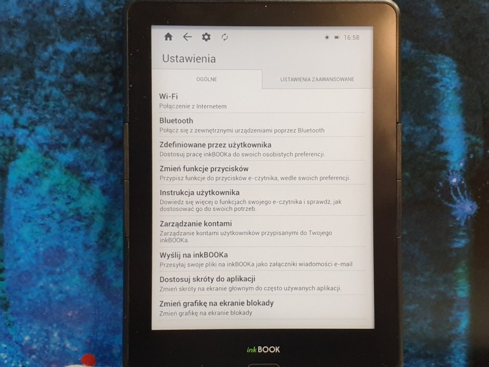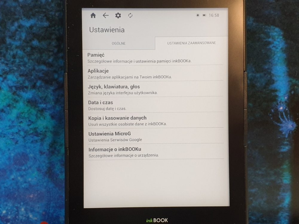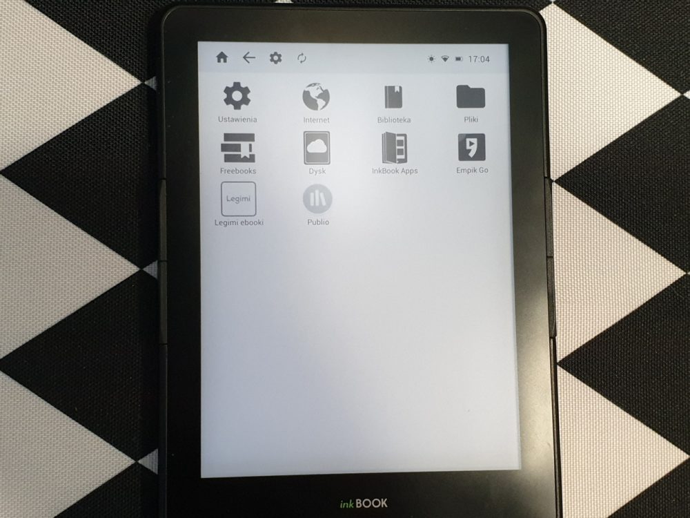 - Zainstalowane aplikacje: Biblioteka (Książki), Przeglądarka internetowa, Drive, Księgarnia inkBOOKS, News Reader, darmowe aplikacje w inkBOOK Apps