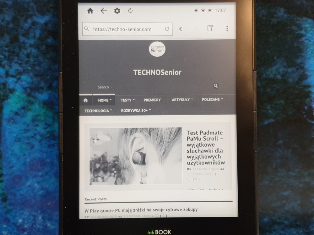 Po odpowiednim skonfigurowaniu możemy za pośrednictwem sieci domowej lub hot-spotu wejść do Internetu. Kliknięcie ikonki Browser (przeglądarki internetowej) spowoduje to automatyczne uruchomienie ustawionej strony domowej na przykład TECHNOSenior i mieć wszędzie dostęp do potrzebnych nam informacji. Warto przy tym zaznaczyć, że wszelka zawartość jest bardzo czytelna nawet w silnym słońcu. Niestety prędkość jej działania nie jest zadowalająca. Dostępne aplikacje pozwalają nam rozbudować nasz czytnik o swoją bibliotekę e-książek. Do każdego modelu czytnika Arta Tech dodawane są bezpłatne e-książki. Dodatkowo mamy zniżki na wszystkie ebooki w księgarni inkBOOKS. Możemy korzystać z abonamentów takich jak Legimi. Dzięki aplikacji freebooks masz darmowy dostęp do tysięcy e-booków z całego świata takich jak: Wolne Lektury, Project Guttenberg czy Feedbooks. W menu ustawienia możemy skonfigurować min. ustawienia czcionki, daty i czasu, włączyć automatyczny obrót ekranu, czy przywrócić urządzenie do ustawień fabrycznych.