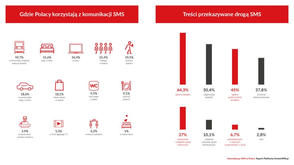 Co motywuje Polaków do używania tego kanału komunikacji? – SMS-y doceniamy z uwagi na prostotę korzystania (80,4%) oraz powszechność dostępu (80,1%), ale również szybkość dostarczenia (77,1%) czy ich wszechstronne zastosowanie (71%). To właśnie sprawia, że SMS-ują osoby o różnym wieku, z różnych grup społecznych i w różnych sytuacjach – mówi Daniel Zawiliński, Dyrektor Zarządzający Platformy SerwerSMS.pl.
