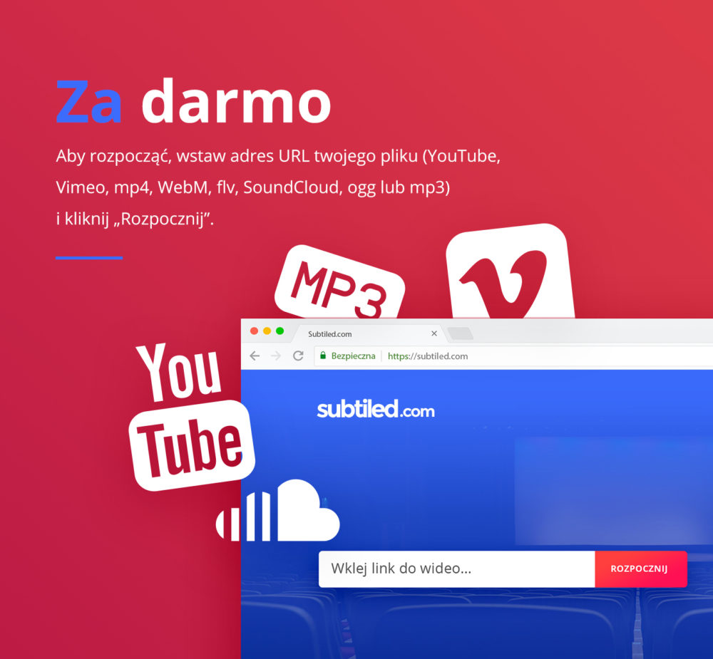 Jakie funkcje posiada opracowana przez niego aplikacja? Subtiled.com pozwala przede wszystkim na tworzenia napisów w szybki i intuicyjny sposób. Jego ogromną zaletą jest obsługa licznych formatów, takich jak: YouTube, Vimeo, mp4, WebM, flv, SoundCloud, ogg i mp3. Aplikacja zapewnia również cenioną przez internautów poufność danych i szyfrowanie połączenia (SSL).