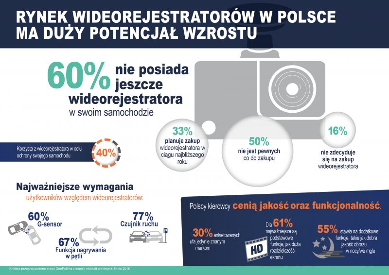Zgodnie z wynikami ankiety przeprowadzonej przez OnePoll na zlecenie reichelt elektronik w Polsce, Niemczech, Francji, Wielkiej Brytanii, aż 60% respondentów z Polski w dalszym ciągu nie korzysta z wideorejestratorów w swoich samochodach. Z tego około 33% planuje zakup kamery w ciągu najbliższego roku, natomiast 50% nie jest jeszcze zdecydowana. Tylko 16% ankietowanych nie planuje zakupu wideorejestratora.