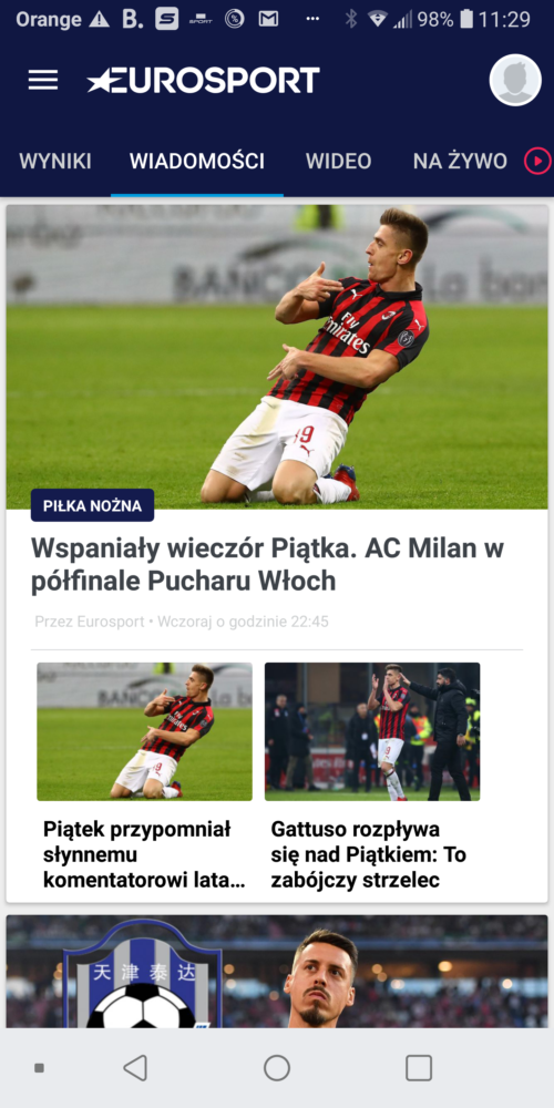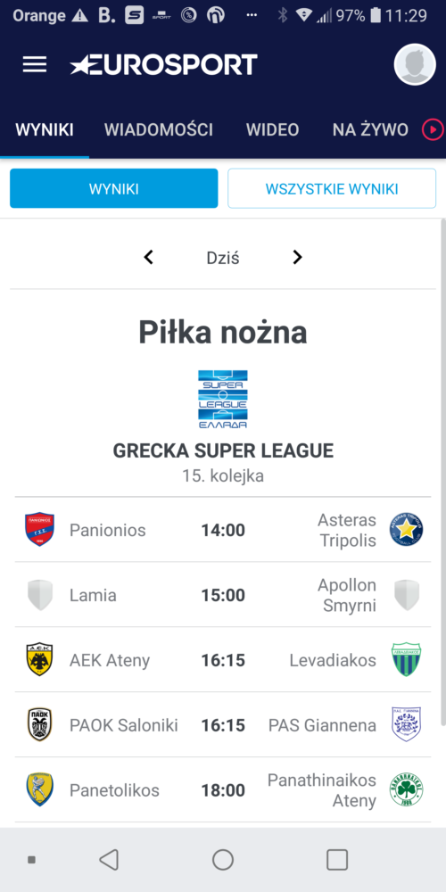 Kanał Eurosport to jeden z najpopularniejszych kanałów sportowych w Polsce, więc nie dziwne, że jego właściciele wypuścili też aplikację mobilną. Aplikacja podzielona jest na 4 główne sekcje: Wyniki, Wiadomości, Wideo i na Żywo. Wyniki możemy przeglądać jak leci – tzn wszystkie na jednym ekranie. Zdecydowanie lepiej jest jednak wybrać najpierw pożądaną dyscyplinę sportu i je przefiltrować. Oferta wiadomości jest bardzo bogata. Wybrane dyscypliny możemy dodać do „Ulubionych” i oglądać wiadomości tylko dotyczące tych, którymi się interesujemy. To czego brakuje, to możliwości wyświetlania informacji w zagregowanej formie na jednym ekranie. Jeśli interesuje się np. boksem i wyścigami to osobno muszę oglądać listę wiadomości dotyczących boksu a osobno tych związanych z wyścigami. Sekcja wideo też jest rozbudowana. Znajdziemy w nich relacje z ostatnich wydarzeń sportowych – niestety, zwykle nie dłuższe niż 2, 3 minuty. Jeśli chcemy oglądać Eurosport na żywo to konieczne jest pobranie aplikacji Eursport Player i zakup dodatkowego abonamentu.