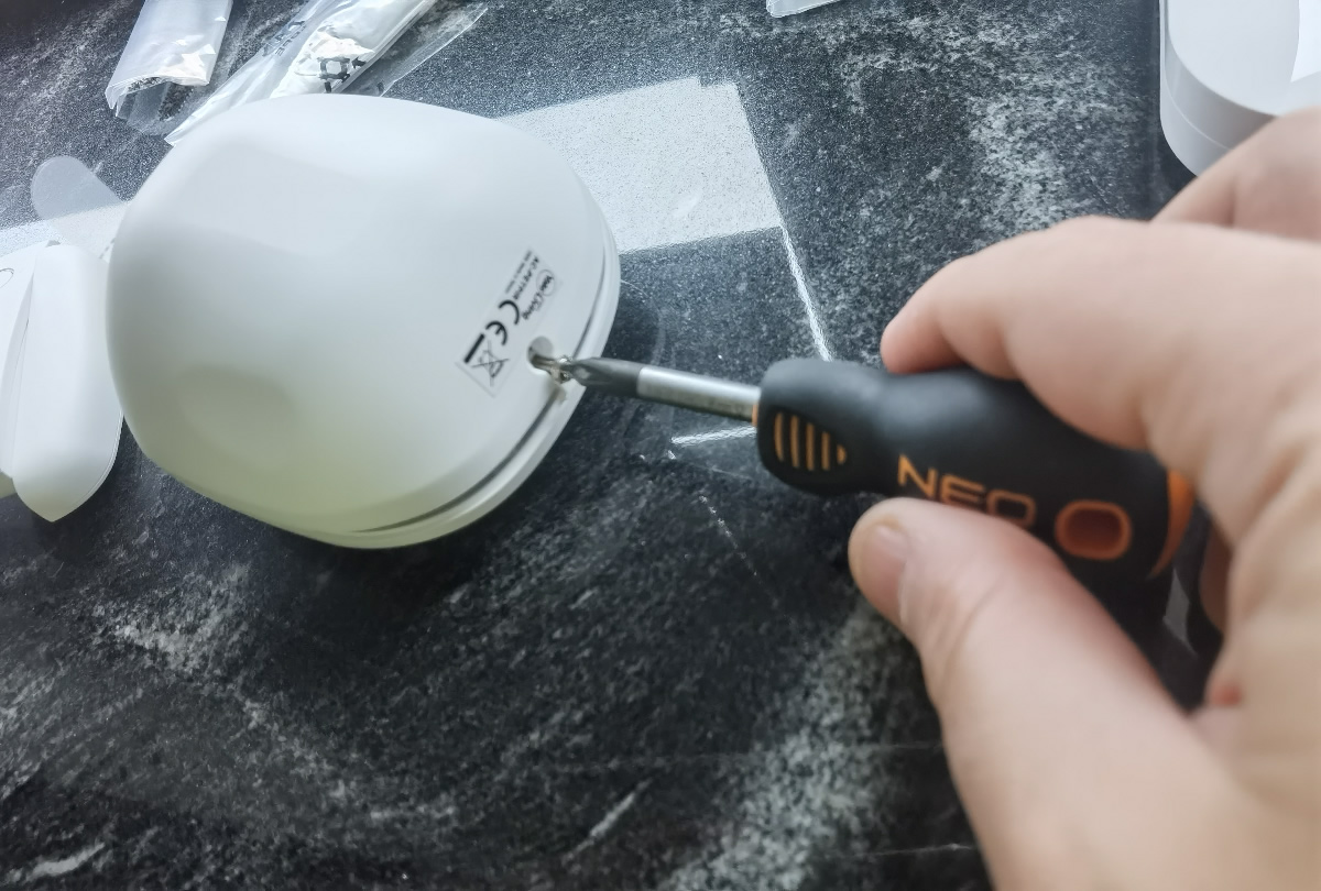 Montaż czujników jest dosyć prosty. Odkręcamy obudowę czujek lub klawiatury i ich pokrywę przykręcamy do ściany lub innej powierzchni. Nie obejdzie się więc bez wiercenia, chociaż możemy też próbować przykleić czujki odpowiednio mocną taśmą dwustronną. Po zamocowaniu przykręcamy czujki do obudowy i system jest gotowy do działania. Wszystkie elementy Yale Sync (oprócz Smarthuba, który ma wbudowany akumulator) zasilane są bateryjnie, więc nie ma potrzeby prowadzenia kabli. Szczególnie w przypadku już eksploatowanych lokali, uważam to za sporą zaletę.