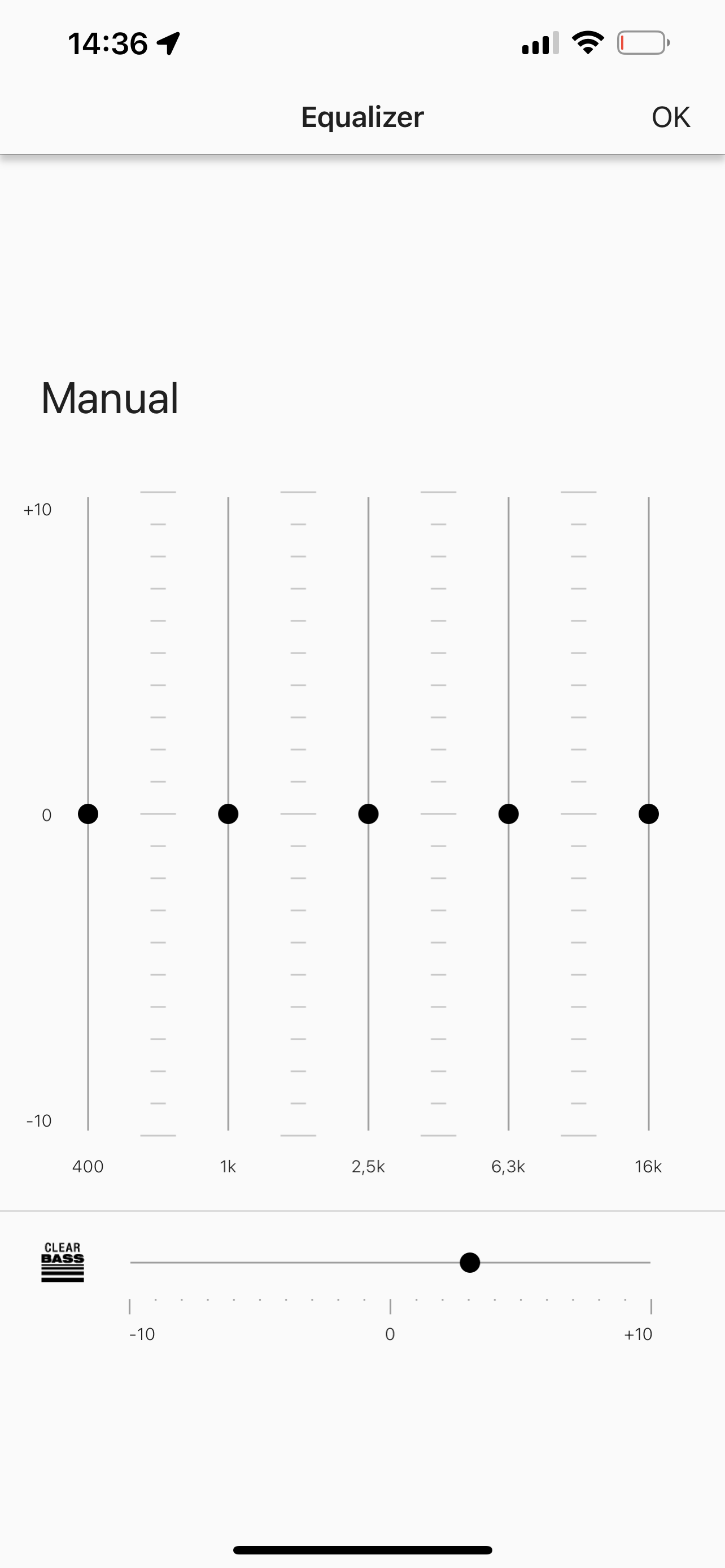 Parametry odtwarzania można też zmienić przy pomocy sterowanego z aplikacji equalizera. Zawiera ona kilka presetów z ustawieniami podbijającymi basy, soprany a jeśli to nam nie wystarcza to można stworzyć nowe presety. Basy możemy jeszcze wzmocnić przesuwając suwak funkcji „Clear Bass”.