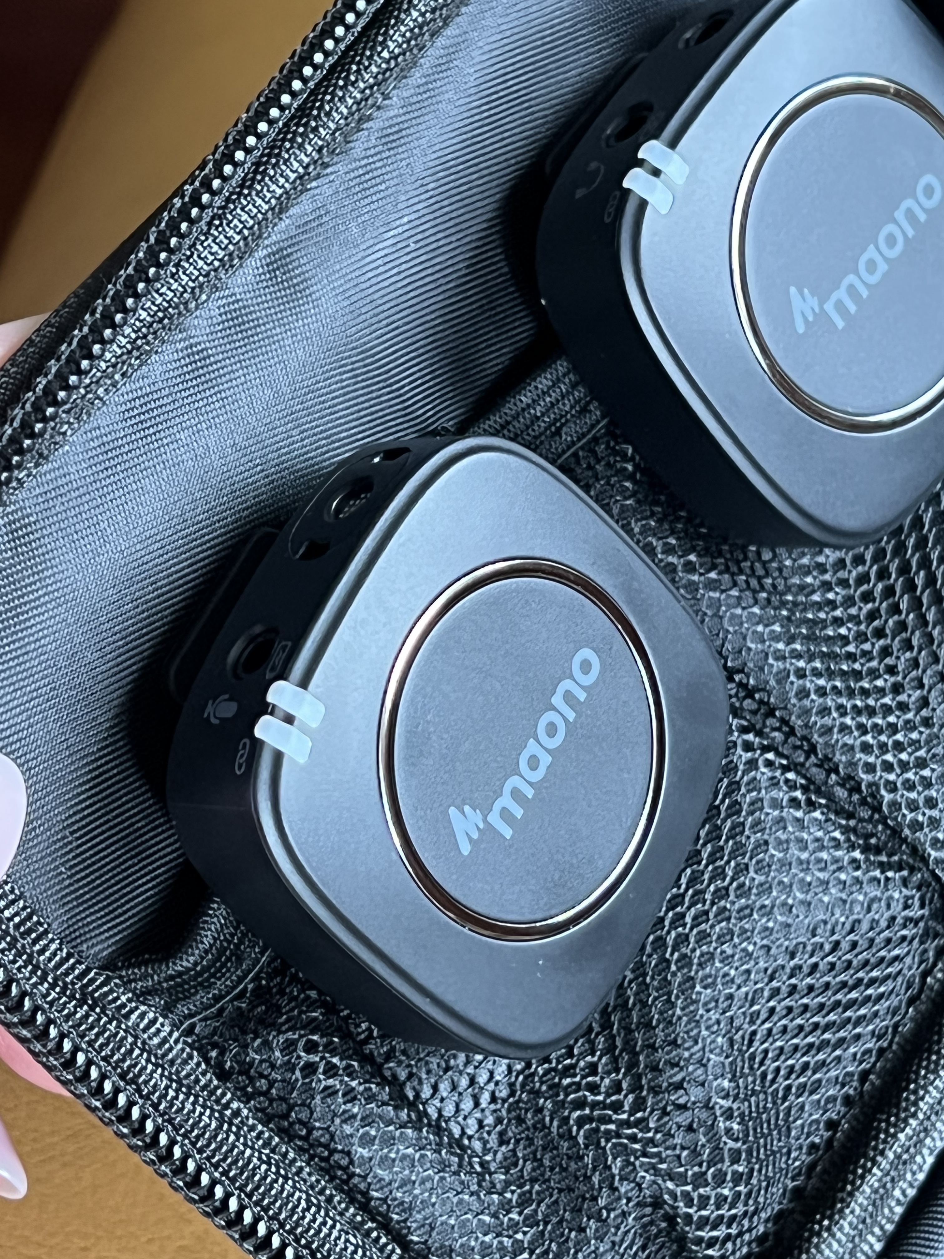 Test wykonywaliśmy w trakcie nagrań kursów online oraz live-ów do Instagrama. Julia i Angelina, które tworzą razem kursy na profilu Shoppingrevolution.expert narzekały trochę na jakość dźwięku w nagraniach wykonywanych iPhonem. Zamiast mikrofonu w telefonie wykorzystaliśmy zatem zestaw Maono, który można podpiąć do telefonu z przejściówką, kablem 3.5mm. (Jeśli chcemy podpiąć mikrofon do kamery lub cyfrowego aparatu to w zestawie jest też odpowiedni kabel z końcówką jack, ale z 3 stykami zamiast 4).