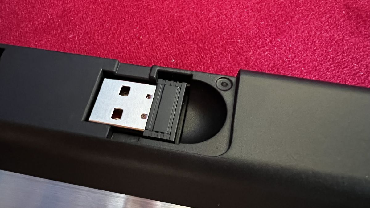 Urządzenie jest solidnie wykonane. Spód klawiatury wykonano z aluminium, którego wąski element widoczny jest też na górnej części pod klawiszami. Reszta obudowy wykonana jest z plastiku. Nad klawiszami znajdziemy gładką półprzeźroczystą powierzchnię pod którą kryją się diody sygnalizujące status pracy urządzenia: włączony CapsLock i status połączenia. Klawiatura ma fizyczny przycisk wyłączania, co pozwala na zmniejszenie zużycia baterii, jeśli planujemy jakiś dłuższy wyjazd. Pod klapką na baterie jest też miejsce do przechowywania odbiornika USB – przydatne, jeśli chcemy zabrać klawiaturę ze sobą, bo minimalizuje to ryzyko zgubienia tego małego elementu.