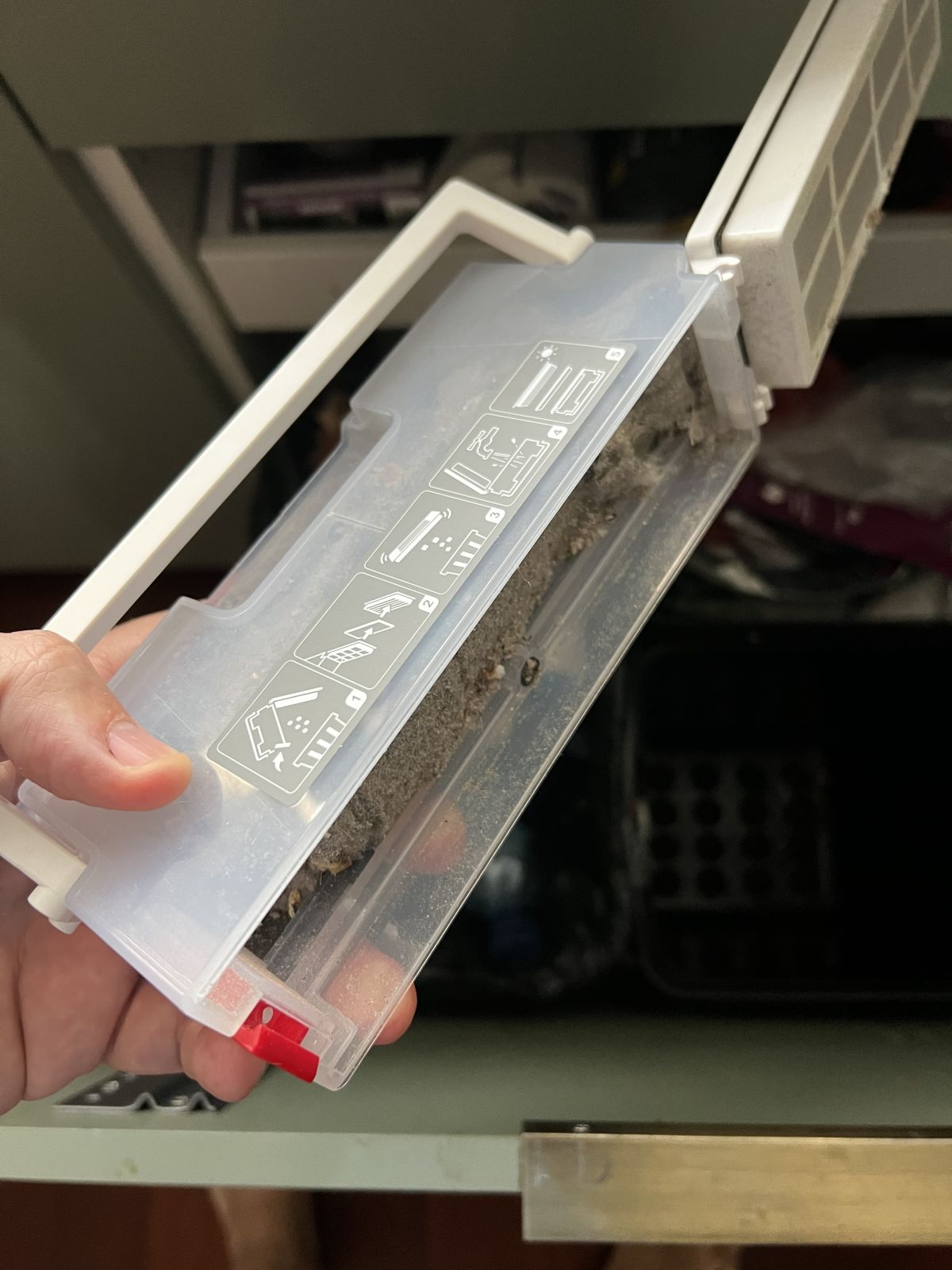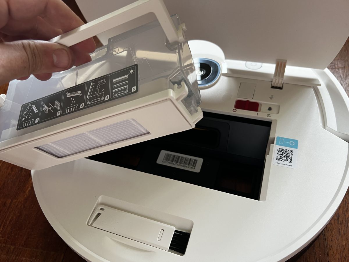 yeedi vac 2 pro oferuje dwie główne funkcje: odkurzania i mopowania. To co nas interesuje w przypadku tej pierwszej, to siła ssania. Wynosi ona 3000 Pa co jest wynikiem bardzo dobrym. Pojemnik na kurz ma pojemność 420 ml. Znajduje się on pod otwieraną klapą i wyposażony jest w filtr HEPA. Jego opróżnianie jest dosyć proste i higieniczne – otwieramy górną klapę odkurzacza, wyjmujemy pojemnik a jego zawartość wyrzucamy do kosza.