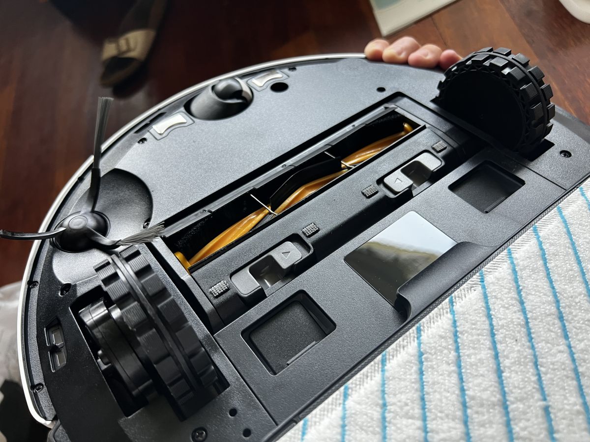 Bateria yeedi ma pojemność 5200 mAh i wystarcza według producenta na maksymalnie 220 min pracy. Powierzchnia całkowita podłogi w moim mieszkaniu wynosi ok 120 metrów – po odliczeniu mebli i innych wyłączonych z odkurzania miejsc, pozostaje ok 75-80 metrów. Z taką powierzchnią odkurzacz radził sobie bez problemu na jednym ładowaniu, przy włączonej funkcji odkurzania i mopowania a pełne odkurzanie zajęło mu nieco ponad godzinę.