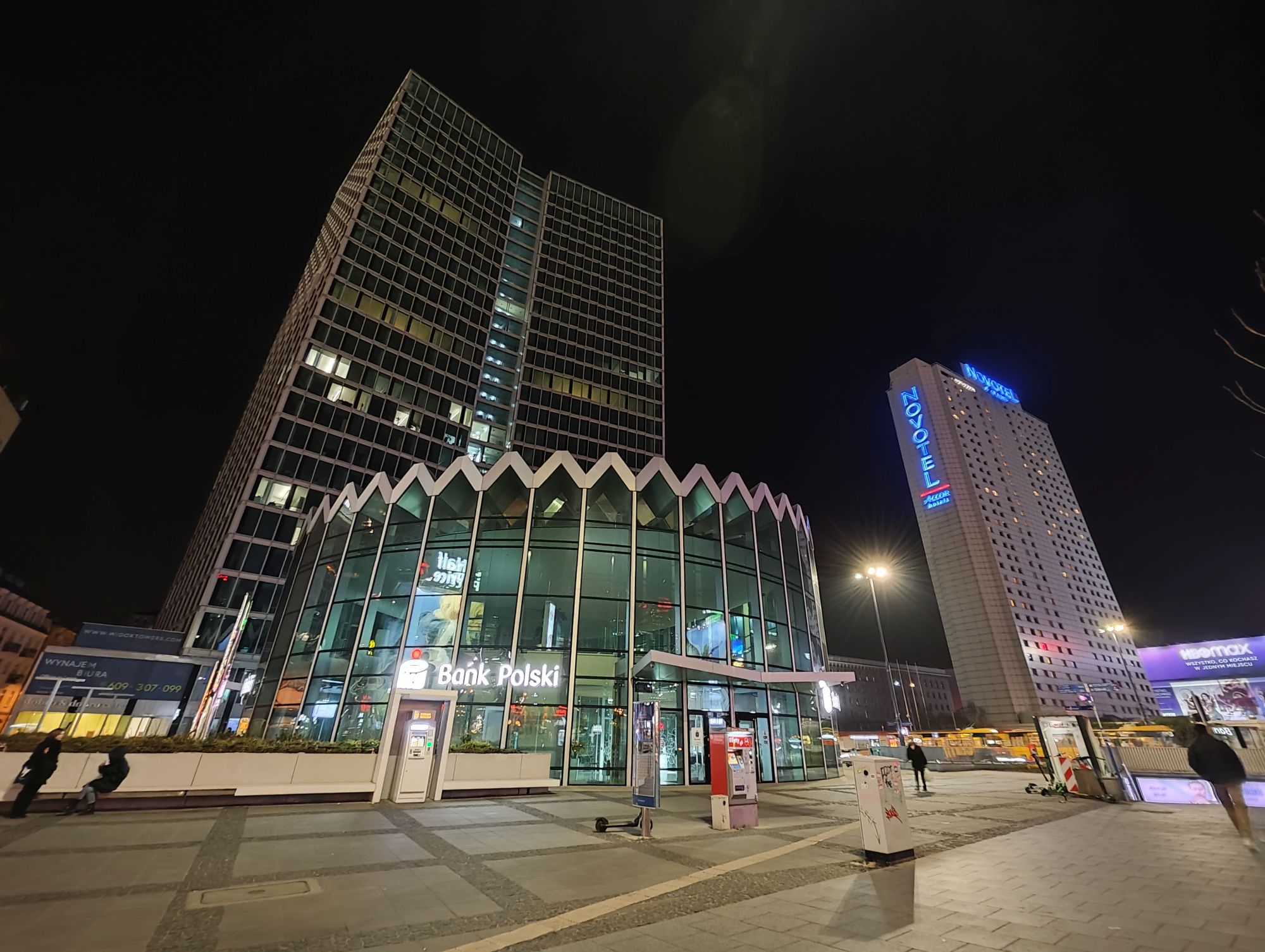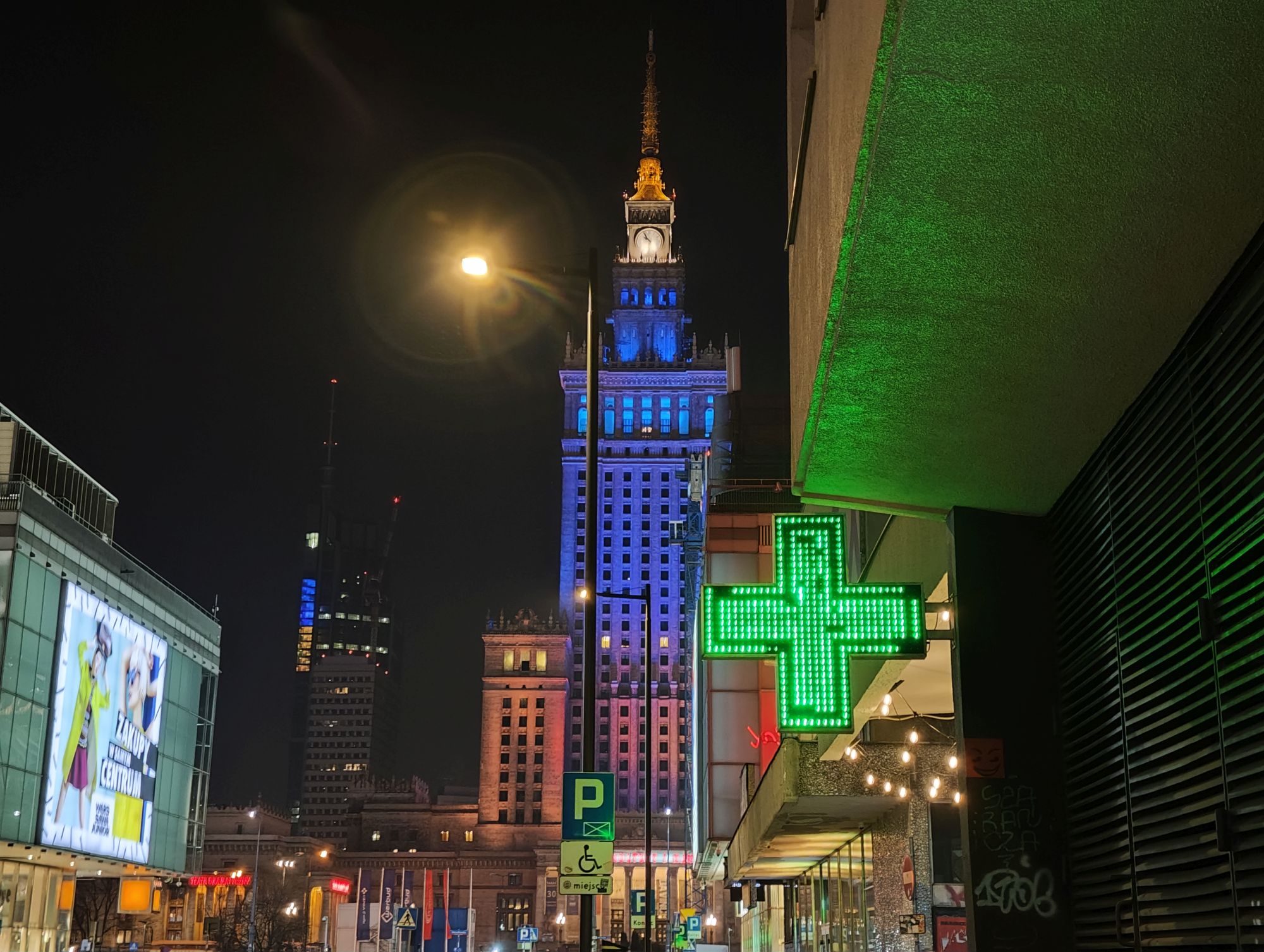Zatem przy ładnej pogodzie otrzymamy bardzo ładne kadry o szerokiej palecie kolorów i bardzo szczegółowe. I to z wszystkich 3 obiektywów – no może te z szerokiego zaczynają mieć na bokach zniekształcenia i nieostrości oraz nieco zmienione barwy względem głównego. Kiedy zaczyna być szarówka, to kadry są również OK, ale jak już wspomniałam wcześniej bardziej widoczne jest w nich podbicie kontrastu. Nocą? Z obiektywu głównego kadr wypada bardzo dobrze – ładnie łapie światło, nie prześwietla, te kadry są bardziej naturalne, a nie sztucznie robiony dzień z nocy. Szeroki kąt wypada nieco gorzej – zaczynają się pojawiać nieostrości i przymglenia. I znowu te zmiany kolorów (inni producenci sobie poradzili już z problemem balansu bieli na różnych obiektywach, w tej klasie smartfonu też już bym tego oczekiwała). Przy bardzo ciemnej scenie też uwydatniają się szumy i nieostrości.