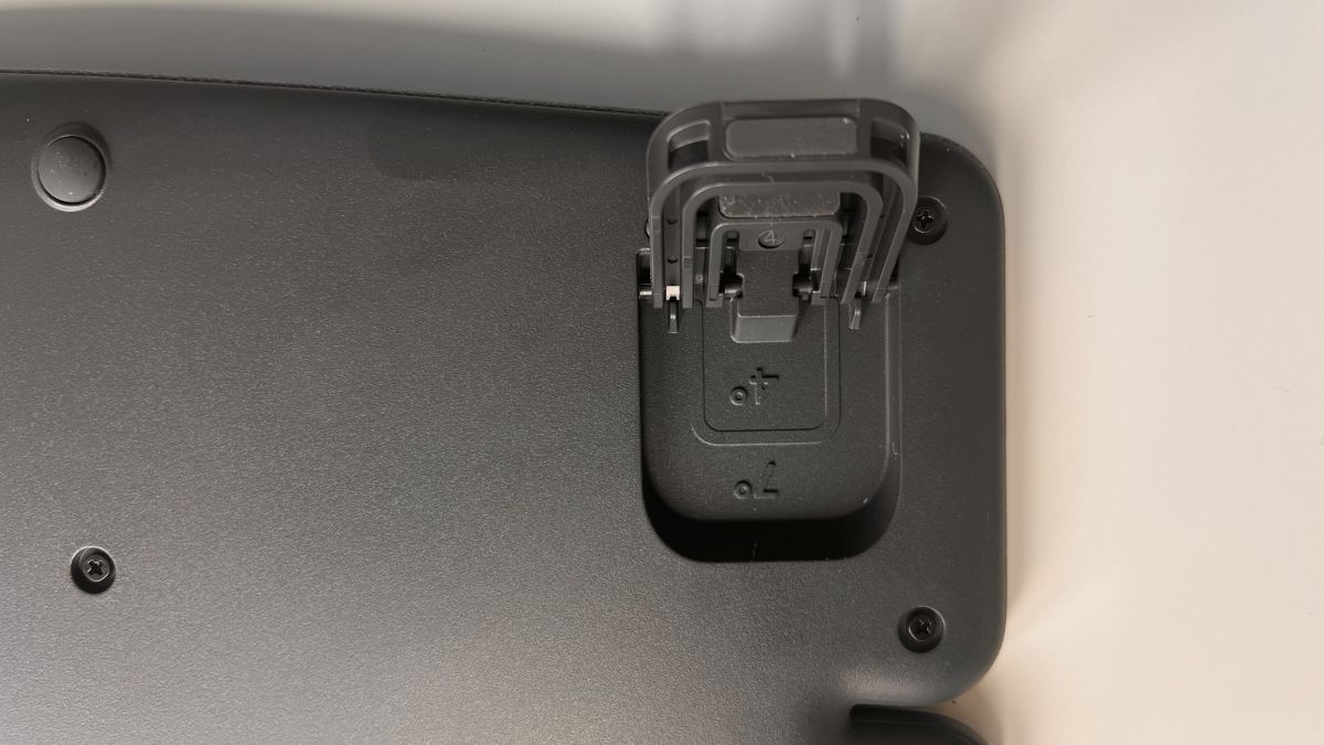 Wspomniana wcześniej miękka podpórka pod nadgarstki jest jednym z kluczowych elementów, które ułatwiają pracę z Ergo K860. Nie tylko poprawia ona komfort, ale również wspiera odpowiednią postawę podczas długotrwałej pracy. Zastosowanie klawiszy chiclet z przełącznikami Logitech Perfect Stroke oraz specjalnie zaprojektowane klawisze wokół środkowej luki zapewniają w teorii łatwość nawigacji po klawiaturze, nawet bez patrzenia. Podpórka ma 2 poziomy wysokości – w niższym kąt pochylenia wynosi 4 stopni a w wyższym 7 stopni. W najwyższym miejscu podpórka znajduje się prawie 7cm nad stołem. Klawiaturę możemy też całkiem złożyć i wtedy jest niemal płaska.