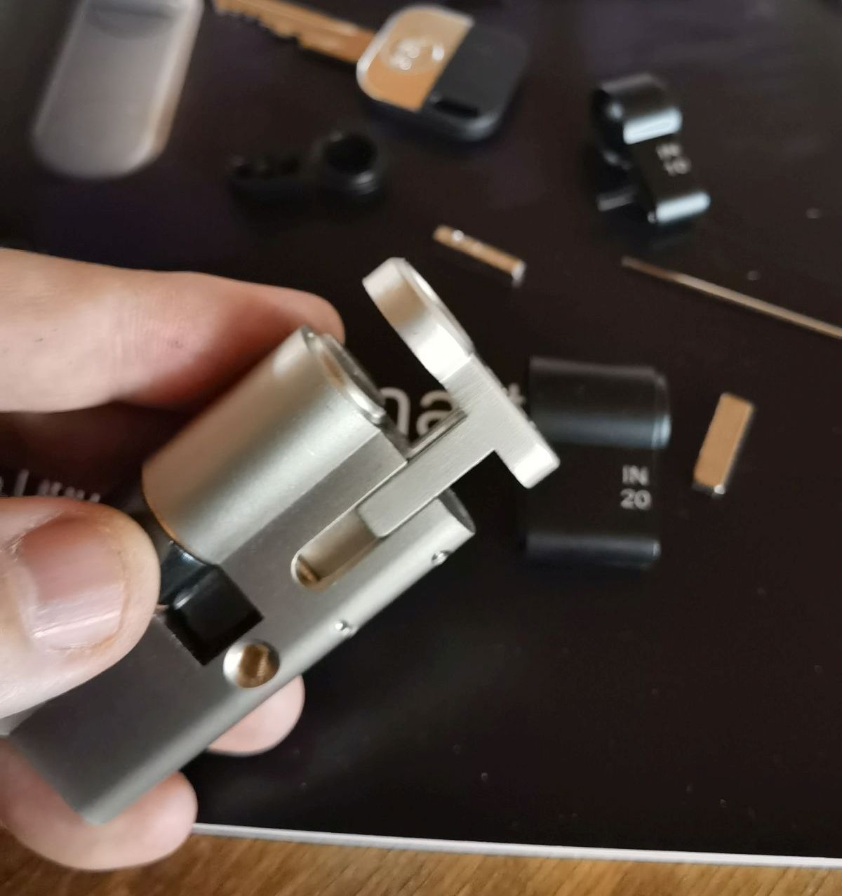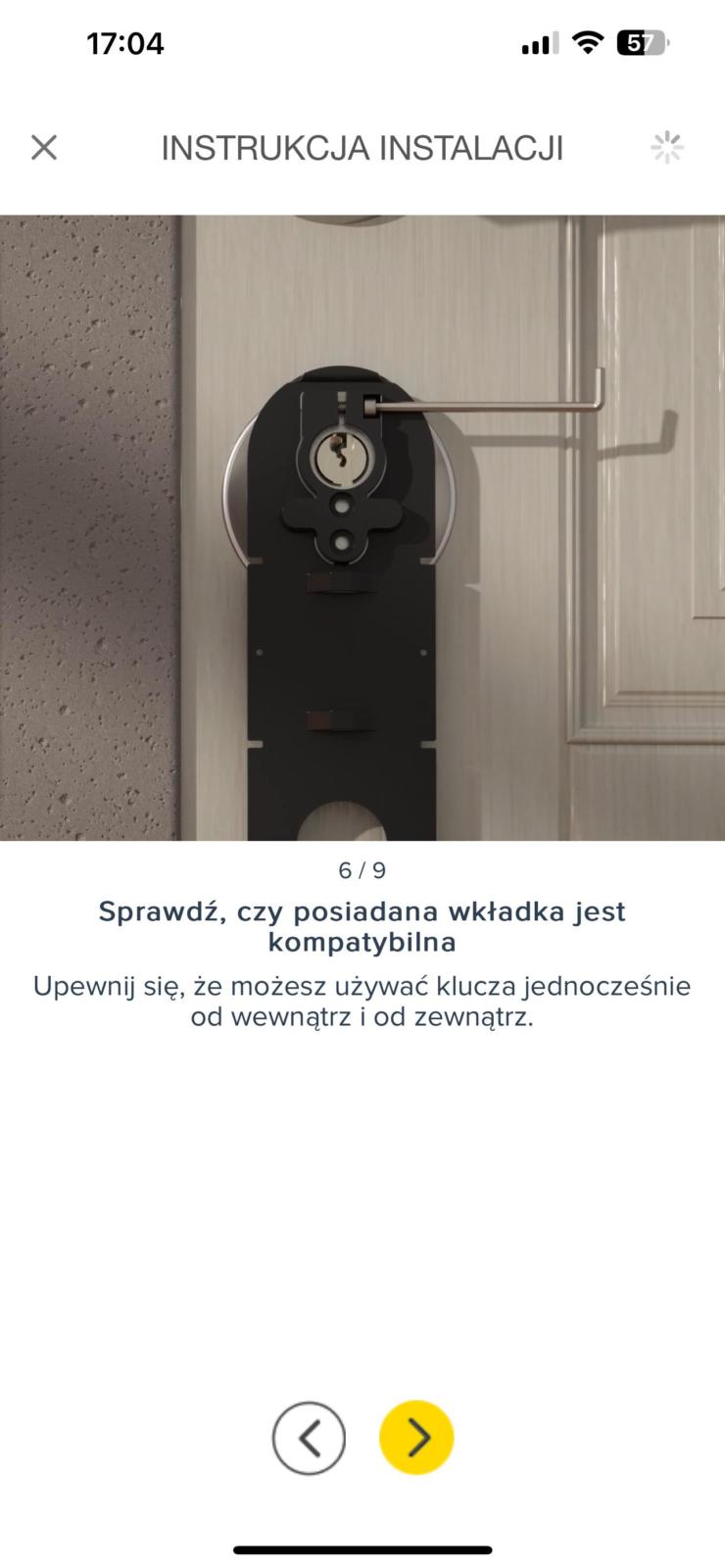 Ostatni krok to wprowadzenie obrotowego trzpienia do wkładki i nasunięcie na niego zamka Linus, co kończy część manualną instalacji. Urządzenie jest teraz gotowe do konfiguracji za pomocą aplikacji mobilnej lub klawiatury. Możliwe jest otwieranie drzwi zarówno tradycyjnie, za pomocą klucza, jak i elektronicznie, z zewnątrz oraz od wewnątrz.