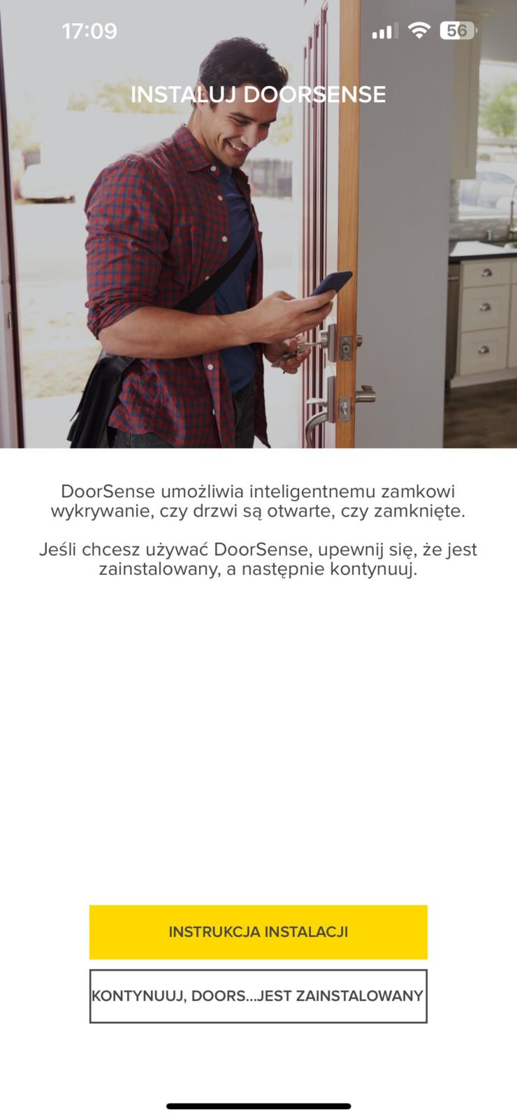 Konfiguracja systemu rozpoczyna się od założenia konta w aplikacji mobilnej, co wymaga podania adresu email i numeru telefonu. Następuje weryfikacja tych danych poprzez wpisanie otrzymanego kodu. Kolejnym etapem jest kalibracja zamka, podczas której „uczy” się on specyfikacji drzwi i wkładki. Proces ten obejmuje przekręcanie gałki oraz otwieranie i zamykanie drzwi, co pozwala zamek Linus zrozumieć, ile obrotów jest potrzebnych do otwarcia lub zamknięcia oraz kiedy drzwi są otwarte lub zamknięte. Do prawidłowego działania funkcji wykrywania stanu drzwi niezbędne jest również umieszczenie na framudze magnetycznej nakładki DoorSense – możemy ją przykleić przy pomocy dołączonych do zestawu folii a jeśli mamy metalową framugę, to wystarczy ją przyłożyć jak magnes.