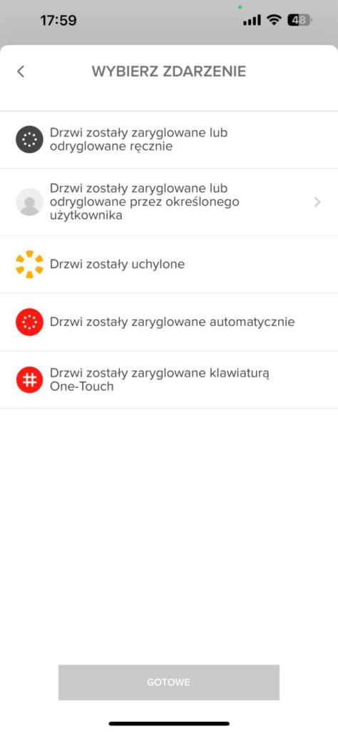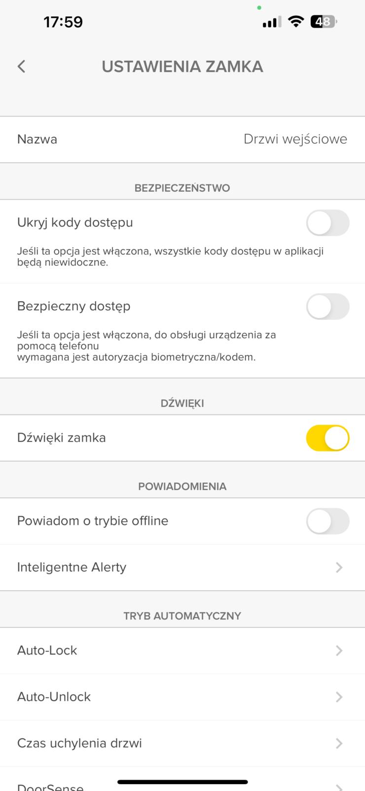 Dodatkową funkcją jest system powiadomień, który informuje o każdym zdarzeniu związanym z użyciem drzwi, co jest szczególnie przydatne dla osób chcących wiedzieć, kto i kiedy wchodzi do lokalu. Aplikacja umożliwia również włączenie/wyłączenie dźwięków sygnalizujących otwieranie i zamykanie zamka oraz zresetowanie ustawień.