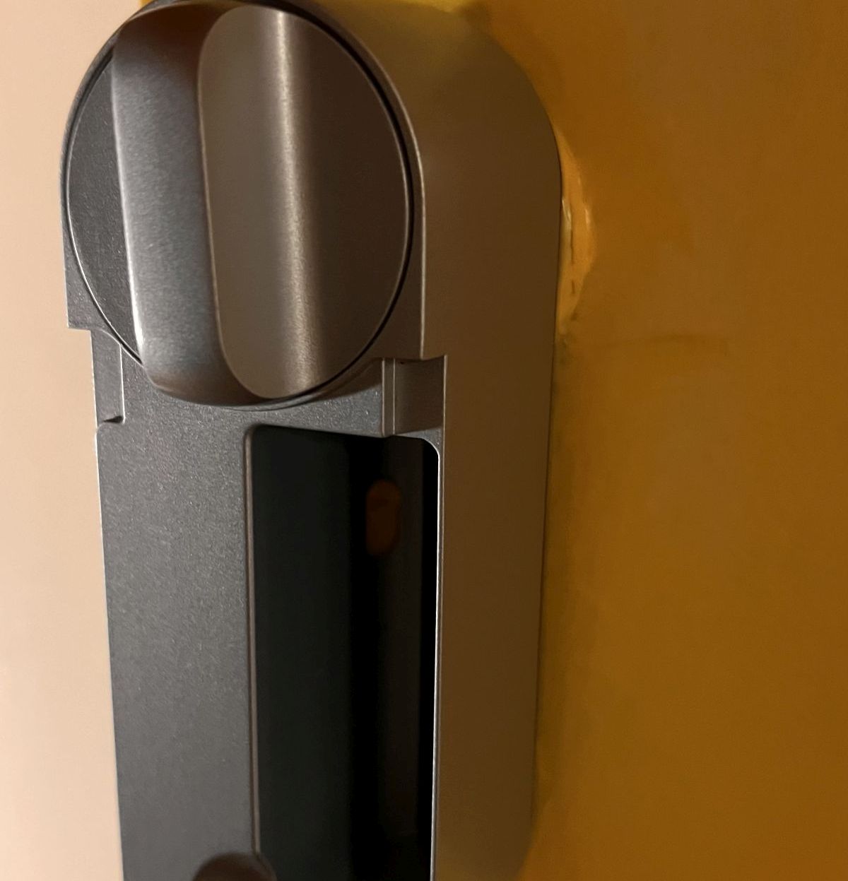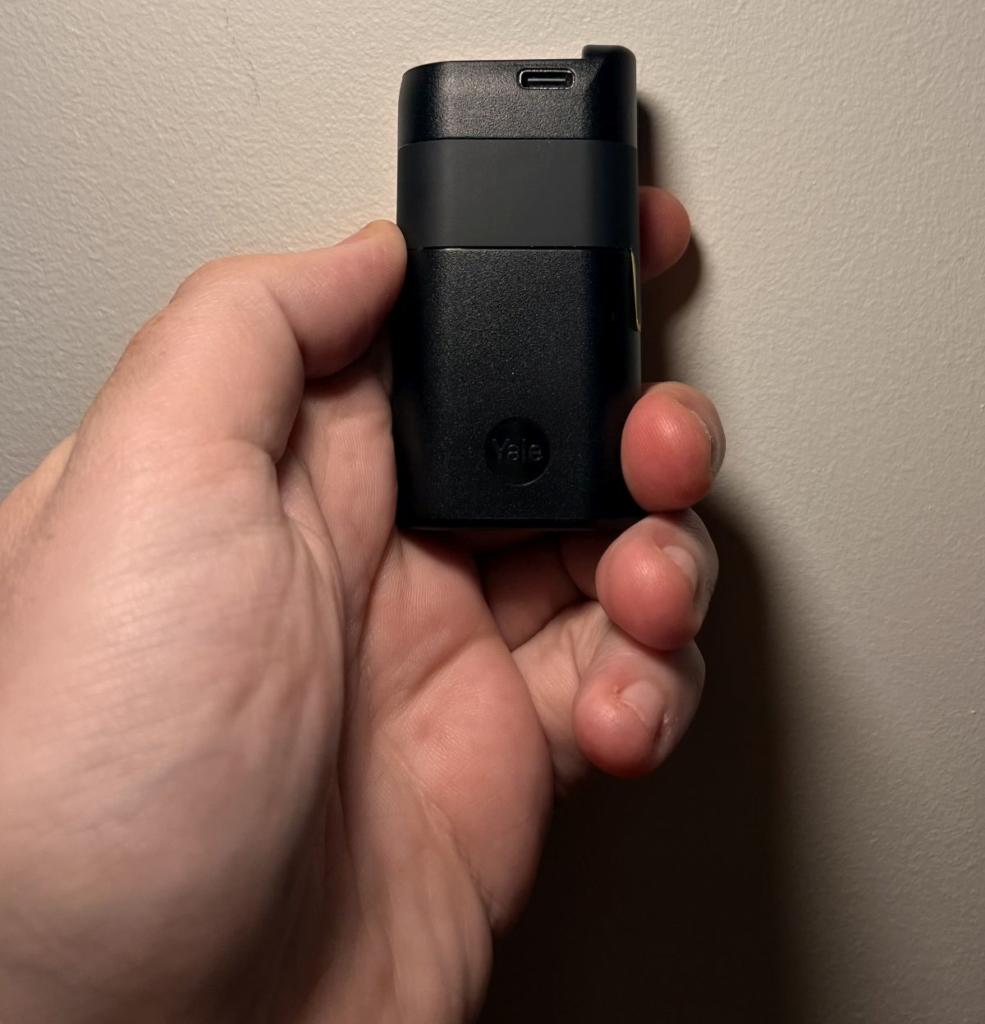 Jakie są zatem różnice w porównaniu z poprzednikiem? Wydaje się, że najważniejszą z nich jest wbudowany moduł WIFI, co eliminuje konieczność dokupienia dodatkowego mostka WIFI, który musiał w dodatku znajdować się w zasięgu Bluetooth zamka. Kolejną innowacją są litowo-jonowe baterie ze złączem USB-C, które składają się z dwóch ogniw 18650. Wystarczają one według producenta na maksymalnie 6 miesięcy – potem należy je wyjąć i doładować. W nowym zestawie dostaniemy też kluczyk NFC – Yale Dot. Po jego skonfigurowaniu przyspiesza on proces otwierania zamka przy pomocy telefonu, który po prostu przykładamy do Dota. Także sam zamek otwiera się teraz znacznie szybciej niż poprzednik, który zasilany był 4 bateriami AA.