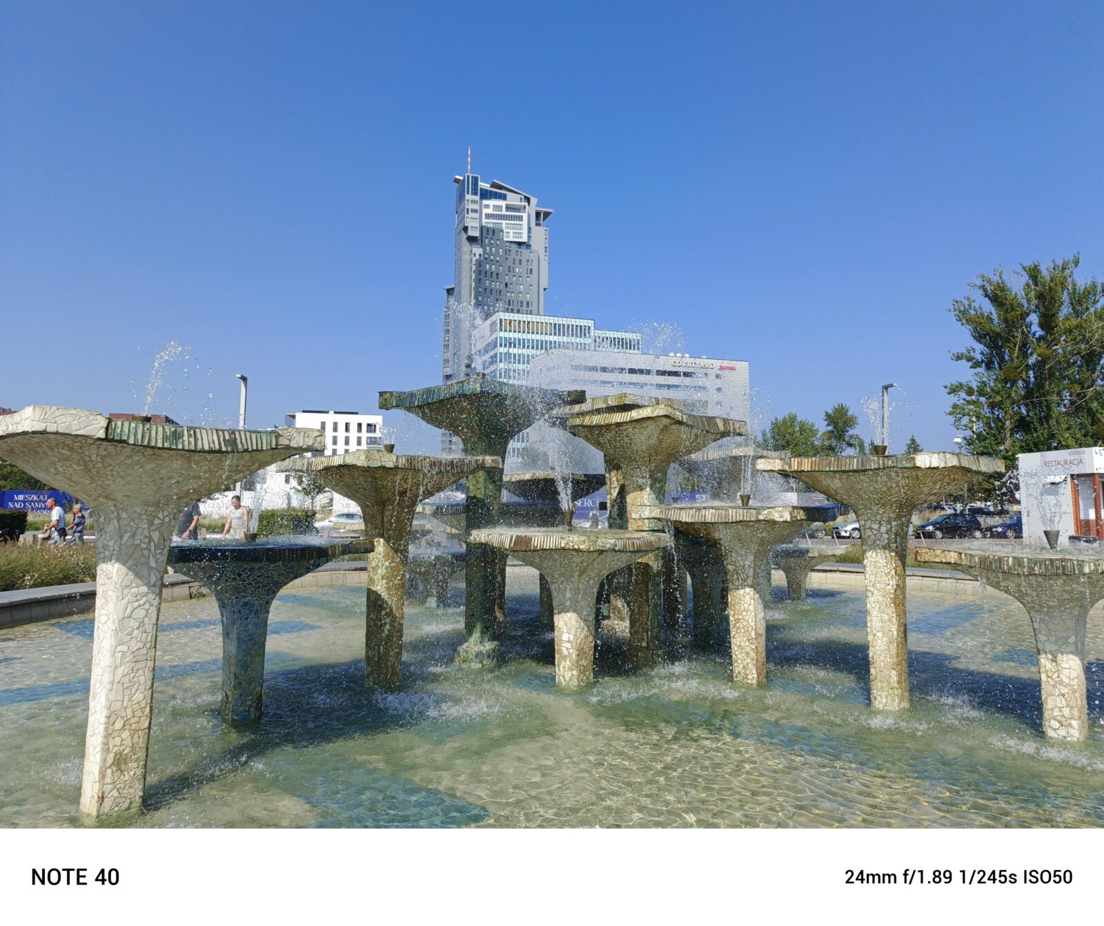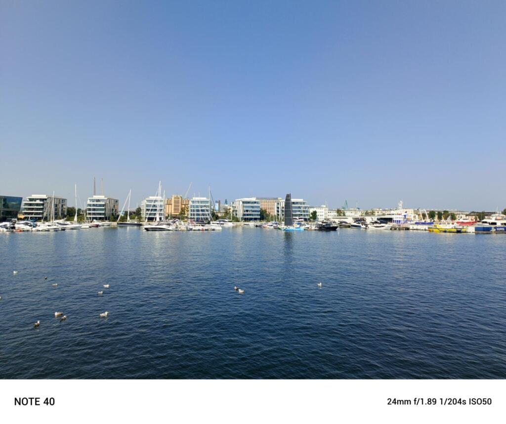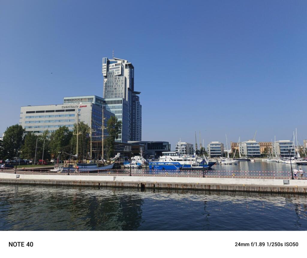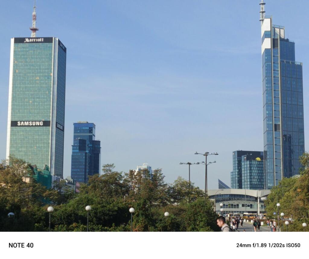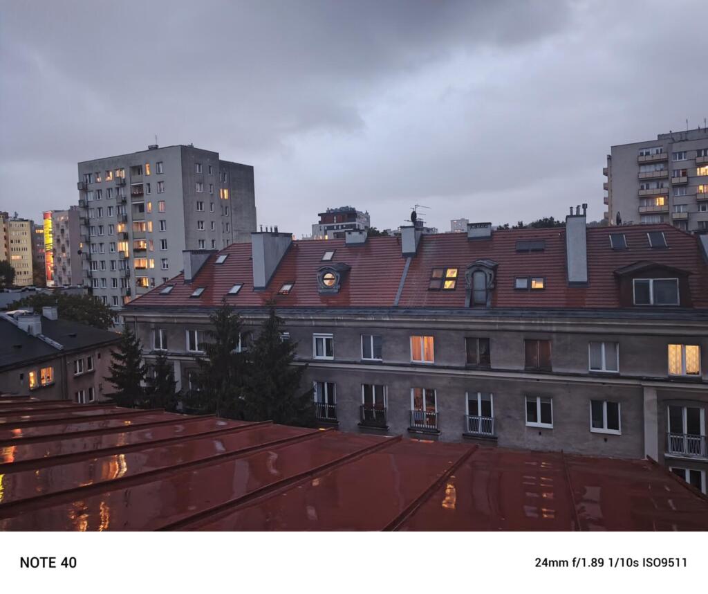 Czy tym telefonem zrobimy dobre zdjęcia? W dobrym oświetleniu będzie całkiem dobrze. Fotki są wyraźne i a kolory żywe. Gorzej w przypadku słabszego światła – tutaj zauważymy wzrost szumów i spadek dokładności detali. A na zdjęciach nocnych pojawiają się świetlne smugi i szumy. Przydałby się tez obiektów ultra-szerokokątny, którego w Note 40 nie znajdziemy.