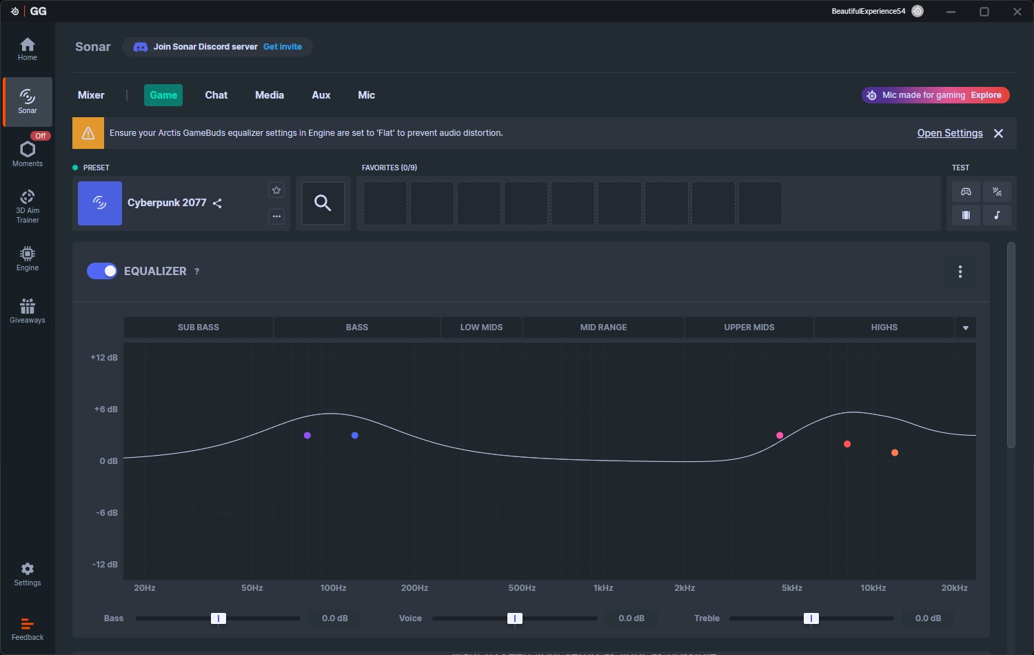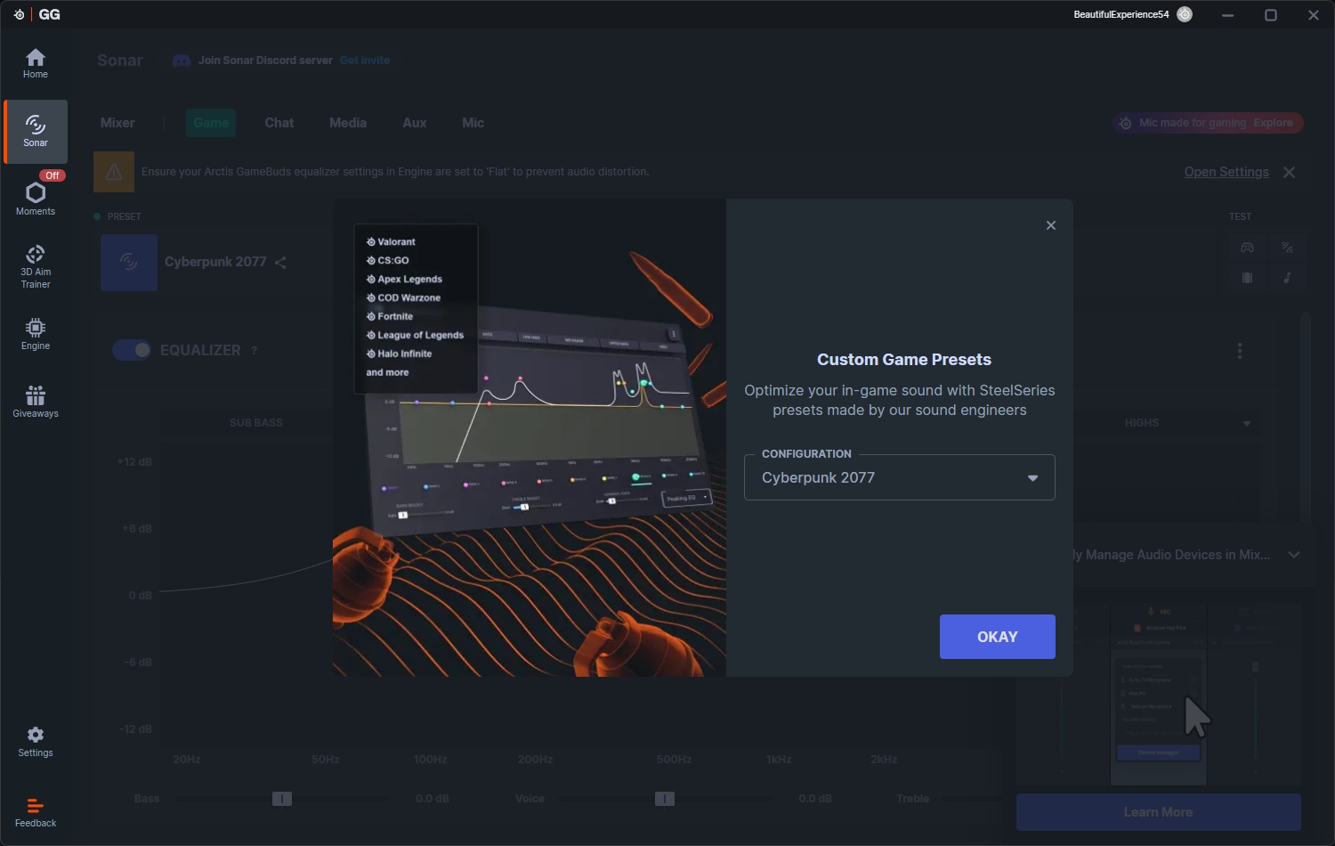Steelseries GG zawiera więcej funkcjonalności niż wersja mobilna. Pozwala nam ona na update firmware’u, dostosowanie presetów do różnych aplikacji indywidualnie – np. osobno do odtwarzania muzyki i czatu. Dostępna jest też oczywiście cała kolekcja presetów do gier. Dzięki niej możemy też zapisywać klipy z rozgrywek a także odbierać różne dodatki do wielu gier.