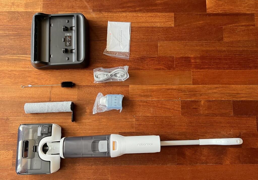 W przeciwieństwie do robotycznych odkurzaczy, do pierwszego uruchomienia nie potrzebujemy połączenia z aplikacją. Wystarczy więc złożyć elementy: zainstalować rurę z uchwytem i panelem do sterowania, nalać wody z detergentem do zbiornika urządzenie jest gotowe do użycia. Trzeba także znaleźć miejsce na stację dokującą na której będziemy ładować odkurzacz.  Cały proces był dosyć prosty i nie wymagał ani wiedzy technicznej ani jakiś specjalnych zdolności manualnych.