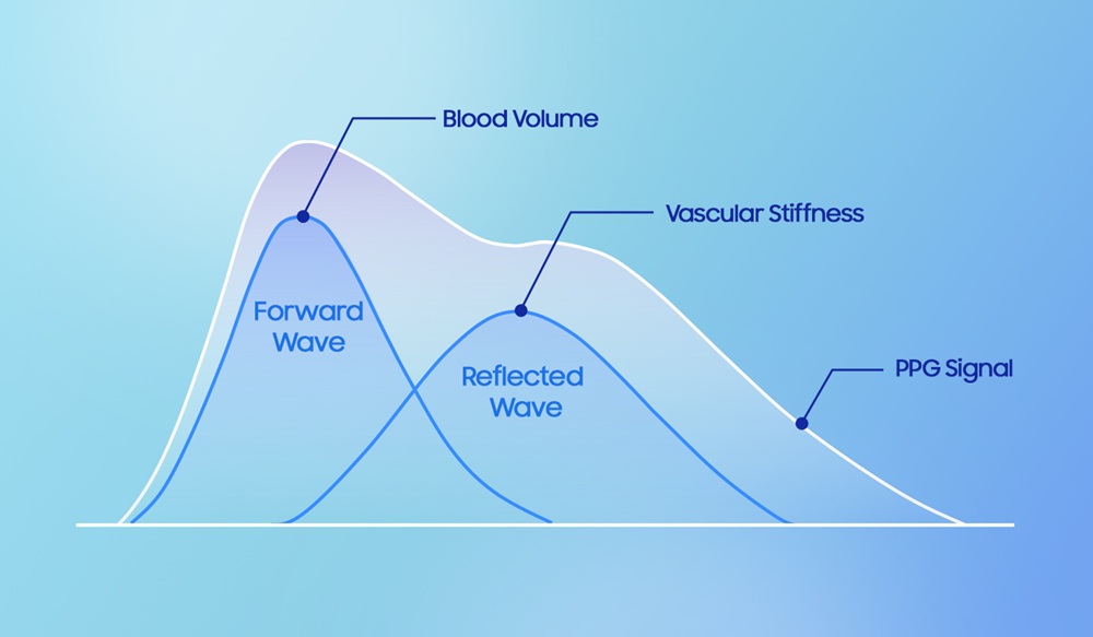 • Obciążenie naczyniowe (Vascular Load): Gdy użytkownik śpi, Galaxy Watch8 mierzy zmiany przepływu krwi w naczyniach podskórnych, po czym ocenia objętość krwi i sztywność naczyń oraz precyzyjnie analizuje zmiany obciążenia naczyń krwionośnych. Ponieważ na wskaźnik ten wpływają dieta, stres i jakość odpoczynku, regularne monitorowanie pokazuje, które nawyki warto zmienić, by z wyprzedzeniem obniżyć ryzyko sercowo-naczyniowe.