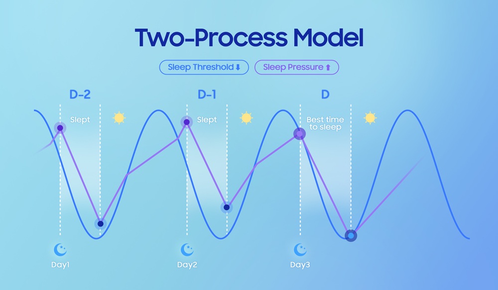 • Poradnik spania (Bedtime Guidance): Bazując na wiedzy o tych dwóch czynnikach decydujących o jakości snu, zegarek Galaxy Watch8 śledzi dobowy rytm aktywności (stan zegara biologicznego) i zapotrzebowanie na sen. Pomiar trwa trzy doby. Następnie podstawia te dane do równania różniczkowego i oblicza ile optymalnie godzin snu potrzebujemy, by obudzić się wypoczętym. Algorytm analizuje krzywą narastania i spadku zapotrzebowania na sen – odpowiednio w ciągu dnia i nocy – by dać użytkownikowi zegarka spersonalizowane wskazówki. Funkcja ta, opracowana przez Koreański Zaawansowany Instytut Nauki i Technologii (KAIST) i przetestowana klinicznie w Centrum Medycznym Samsung, pomaga lepiej planować, by spać głębiej, bez przerw i budzić się rześko.