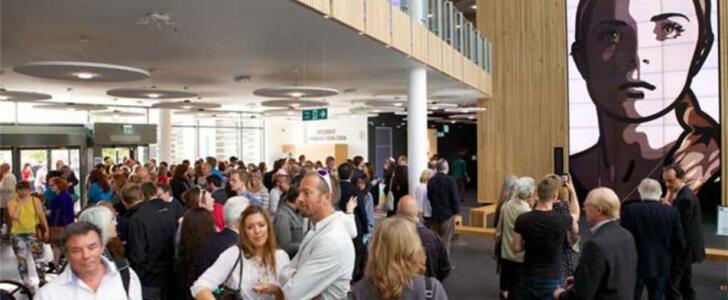 Bath Spa University zamieniła foyer głównego kampusu Newton Park w przestrzeń ekspozycyjną, instalując ścianę wizyjną o wymiarach 7.35 x 3.75 m złożoną z 30 monitorów, którą steruje kontroler DEXON DXN. Monitory pozwalają prezentować bezszwowe, ultrawysokiej jakości treści – od artystycznych instalacji studentów po transmisje wydarzeń akademickich.