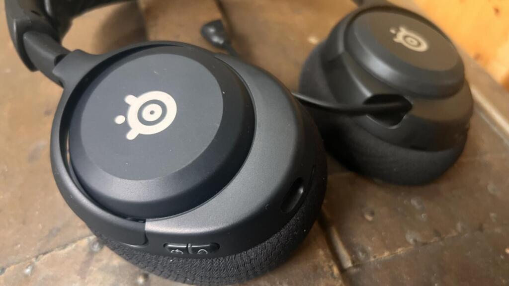 A jak wygląda sterowanie przy pomocy samych słuchawek ? Liczba przycisków jest dosyć ograniczona. Na prawej mamy przycisk włączania i zmiany trybu komunikacji: Bluetooth/2.4GHz. Na lewej jest przycisk wyciszania mikrofonu i regulacji głośności. Taka konfiguracja klawiszy jasno wskazuje, że jest to sprzęt przede wszystkim dla graczy. W przypadku połączenia bluetooth z telefonem, chcielibyśmy mieć chociaż przycisk Play/Pause lub przejścia do następnego utworu. Tego w Nova 5 nie ma.