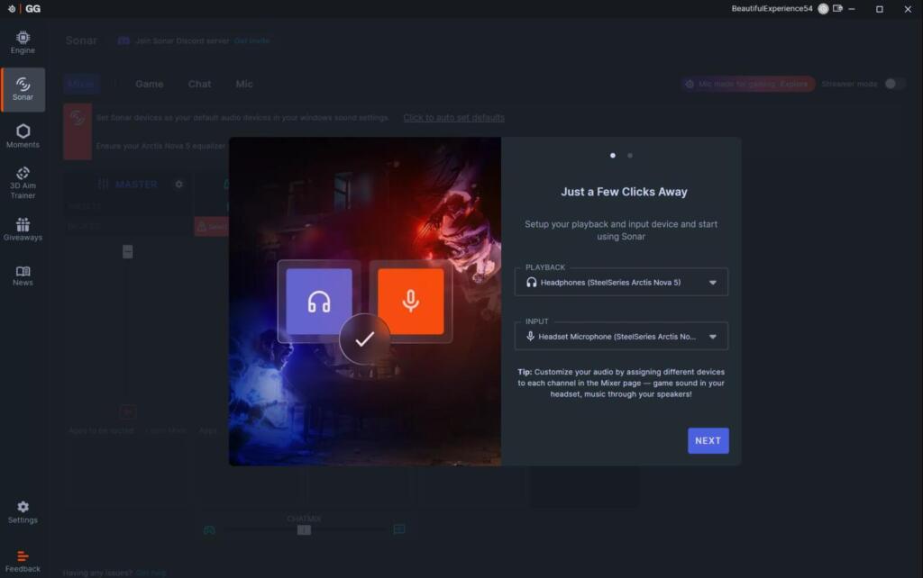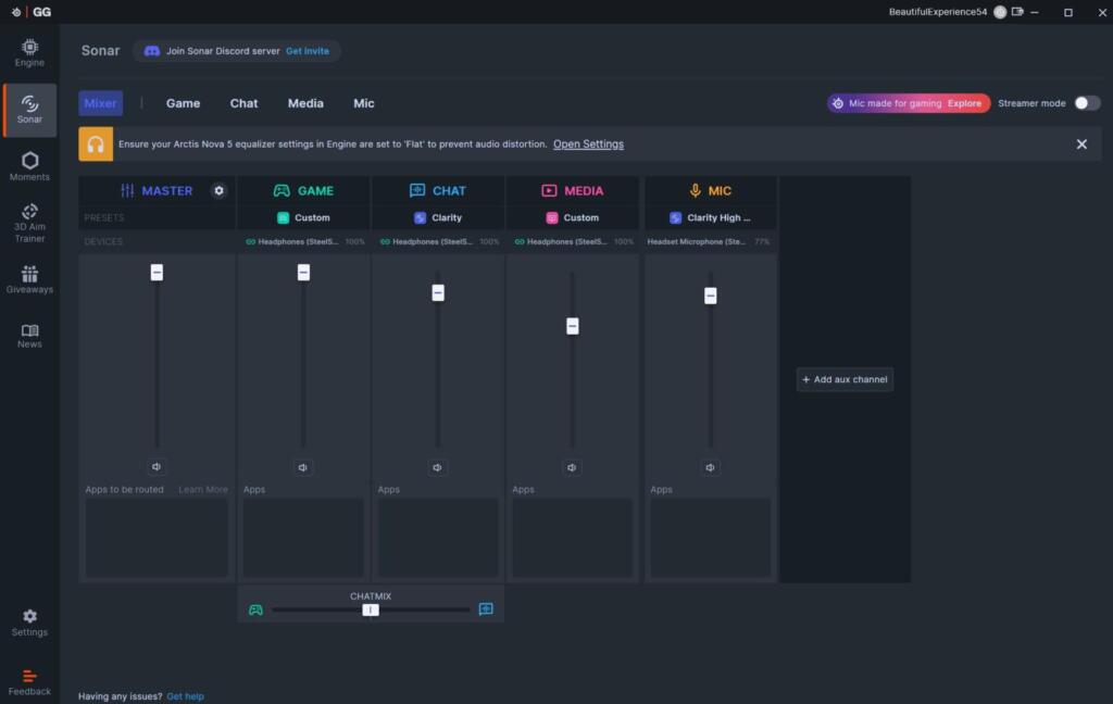 Jeszcze więcej opcji dostępnych jest w programie Steelseries GG dostępnym na platformę Windows. Tutaj możemy jeszcze ustawienia związane ze streamingiem, ustawić mikser głośności a także dokonać uprade’u firmware’u. Wersja PC jest naprawdę rozbudowana i stanowi centrum zarządzania także innymi produktami marki Steelseries.