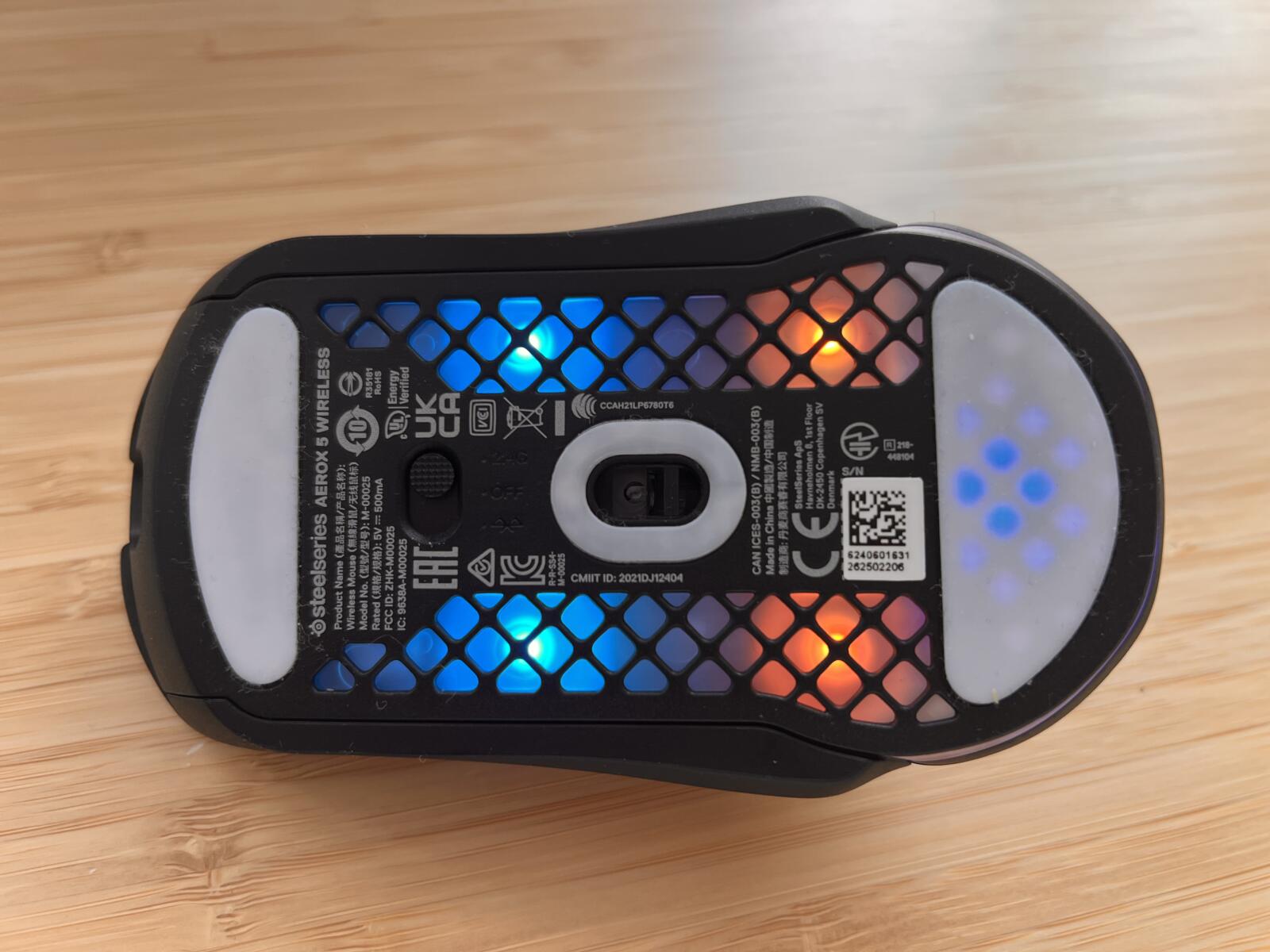 Kształt urządzenia jest symetryczny z lekkim wyprofilowaniem pod praworęcznych użytkowników. Boki pokryto antypoślizgowym tworzywem. W dłoni Aerox 5 Wireless leży stabilnie i komfortowo – to sprzęt stworzony do sesji wielogodzinnych typowych dla graczy.