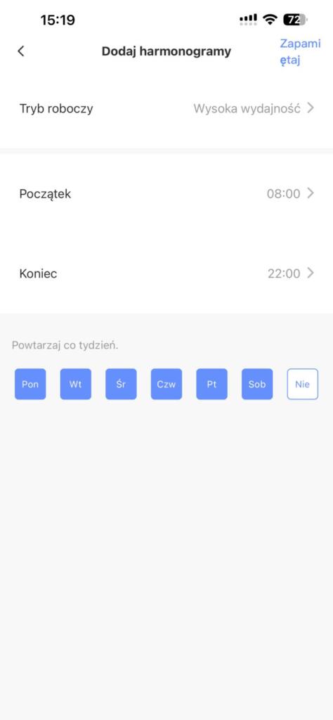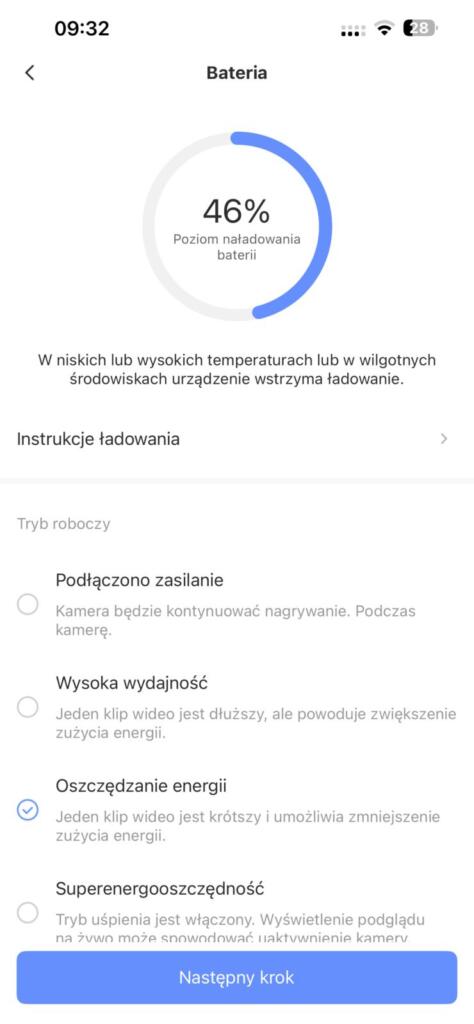 Wbudowany akumulator o sporej pojemności 10400 mAh pozwala na działanie przez kilka dni do kilku tygodni (w zależności od aktywności czujników i pogody), a producent przewidział opcję ładowania z wspomnianego już wcześniej panela solarnego Ezviz, który jest częścią testowanego zestawu. Zwiększa to autonomię pracy i eliminuje potrzebę częstego nadzoru nad zasilaniem. W celu oszczędzania energii możemy też skonfigurować różne tryby pracy i zdefiniować je w określonych dniach i porach dnia. Np. w dni robocze może to być tryb wysokiej wydajności, który powoduje rejestrację dłuższych klipów wideo. W weekendy możemy wtedy ustawić np. tryb ultra-oszczędny w którym nie działają alarmy i wykrywanie celów ale działa np. podgląd obrazu z kamery.