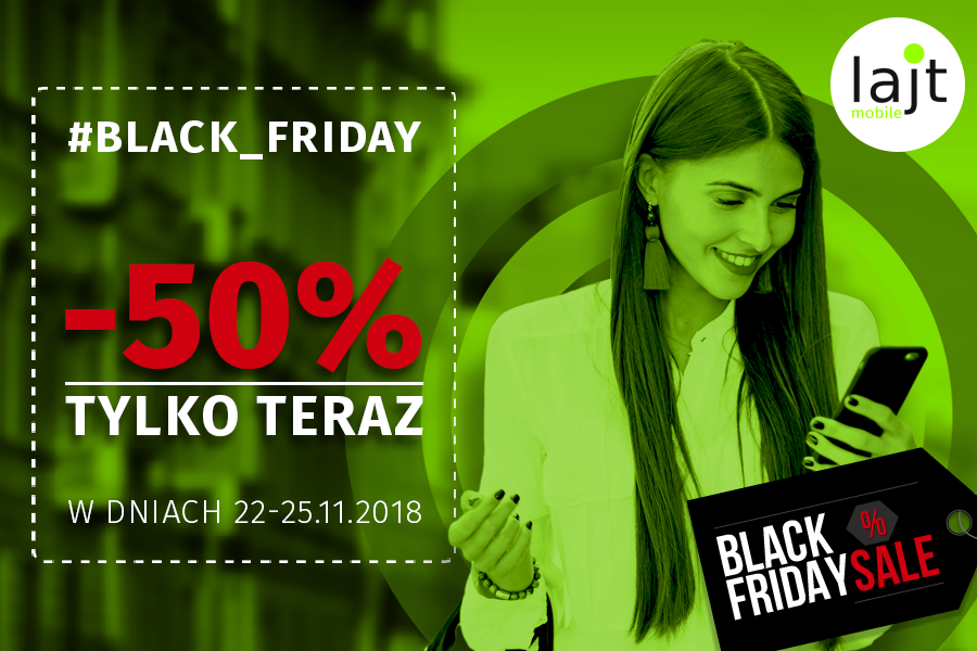 W związku ze zbliżającą się akcją #blackFRIDAY poza promocją doładowań +50% lajt mobile przygotował także obniżkę wybranych planów taryfowych przez cały okres trwania umowy o połowę, czyli: