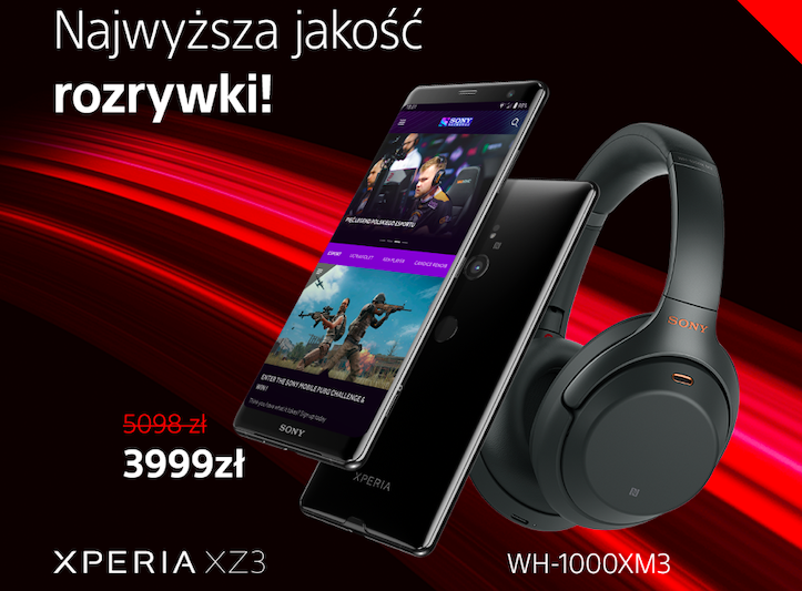 Akcja świątecznej promocyjnej sprzedaży Xperii XZ3 w pakiecie ze słuchawkami Sony WH-1000XM3 potrwa od 3 do 31 grudnia 2018 roku lub do wyczerpania zapasów.