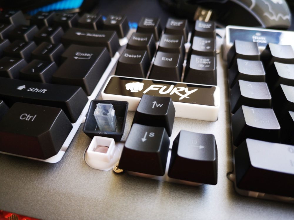 Klawiatura posiada 104 membranowe przyciski w układzie QWERTY z 12 klawiszami multimedialnymi ukrytymi pod F1-F12. Zostały one wykonane z całkiem przyzwoitej jakości plastiku i działają bardzo płynnie. Nie zauważyłam żadnych opóźnień czy błędnego działania.