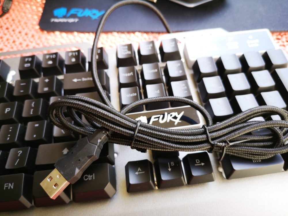 Klawiaturę podłączamy do komputera z pomocą oplecionego kabla USB.